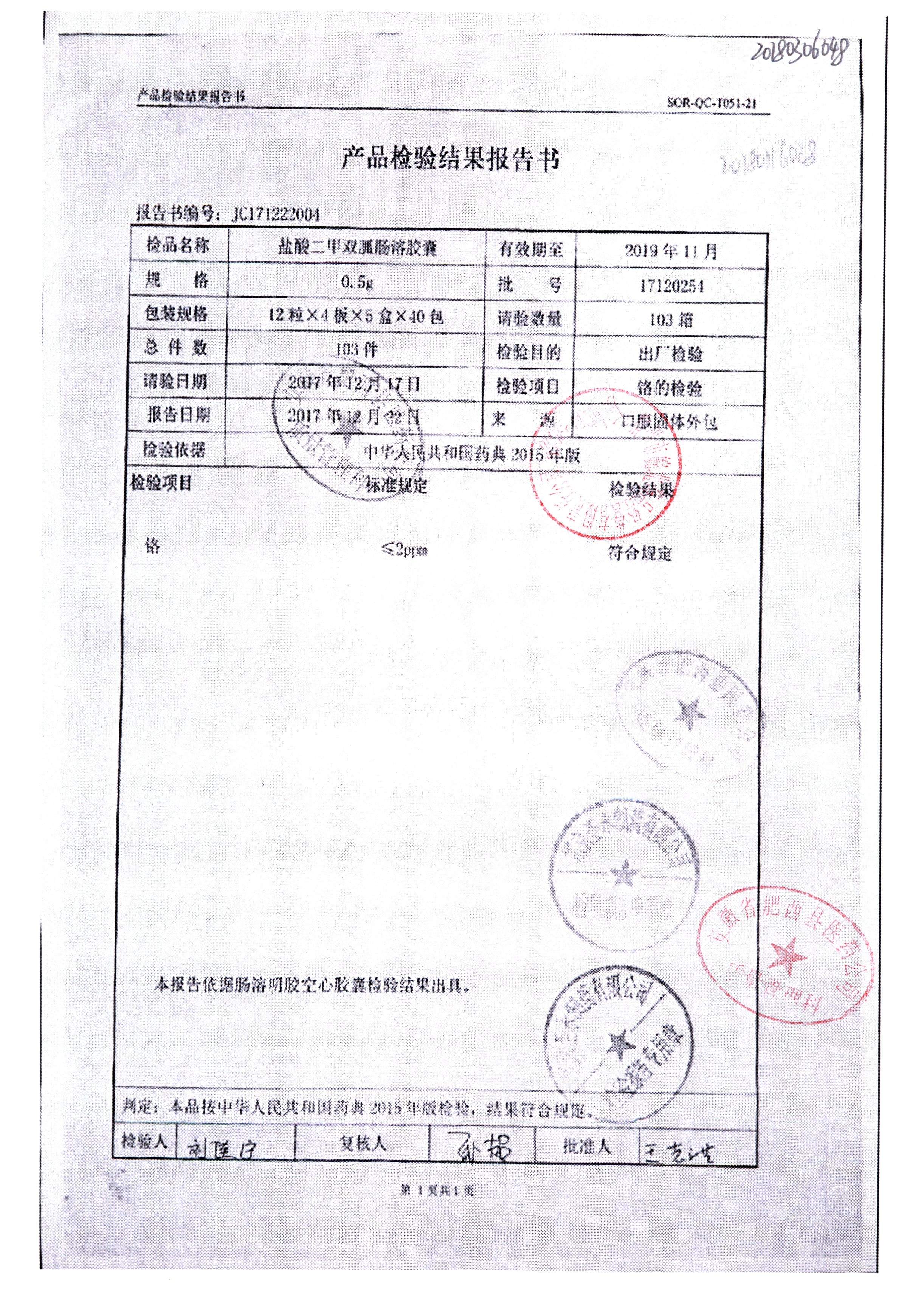鹽酸二甲雙胍腸溶膠囊 | 0.5g*48粒 | 18092048(2/2) | 查看詳情 |