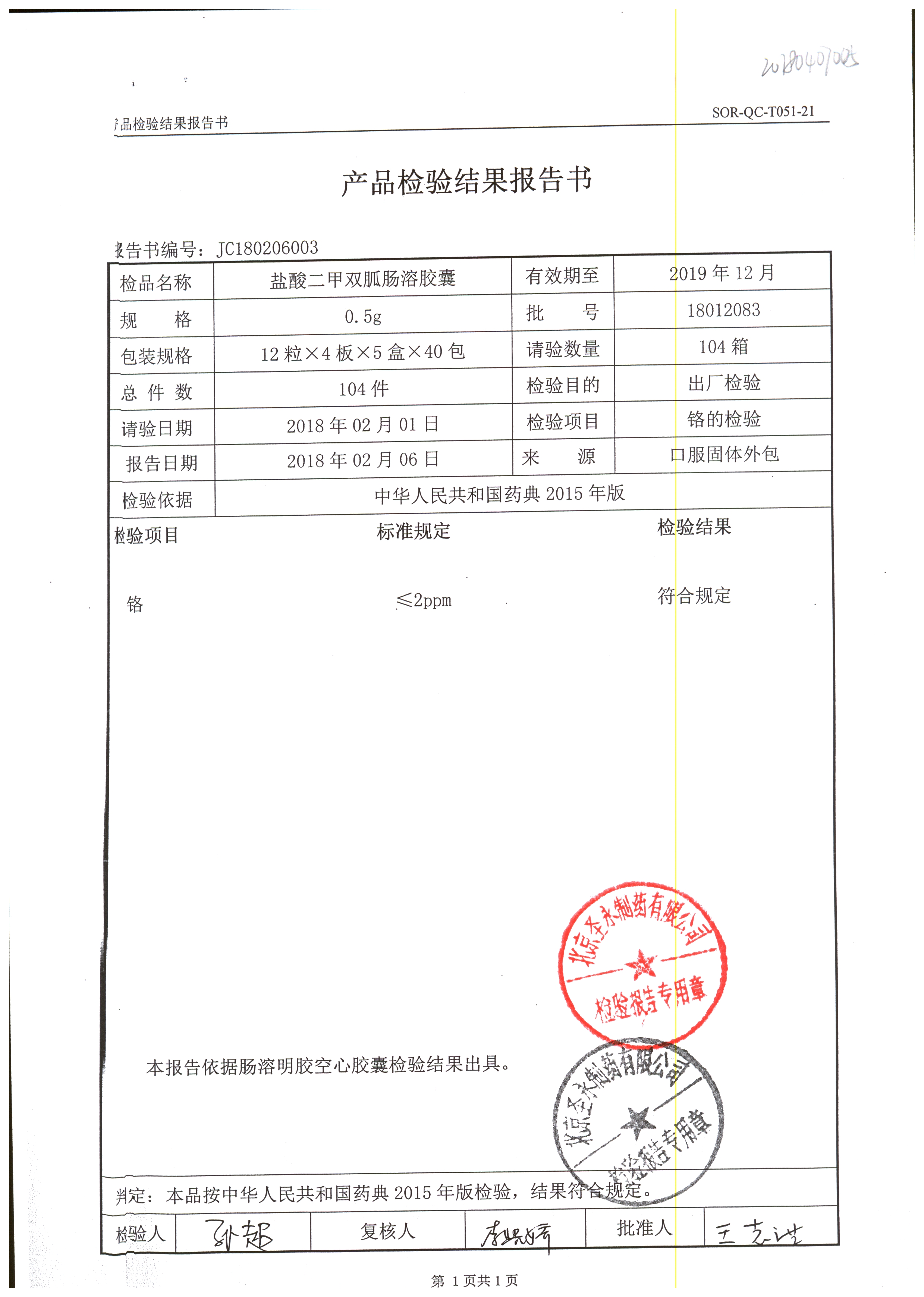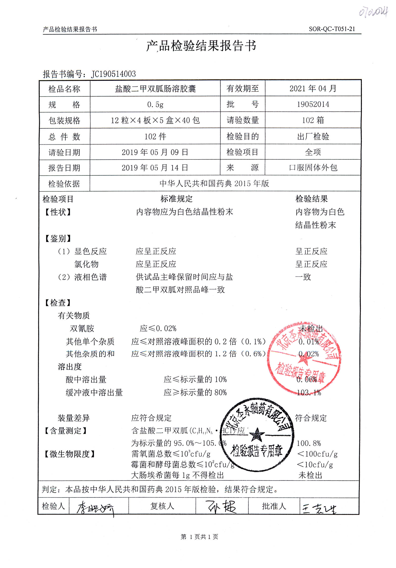 鹽酸二甲雙胍腸溶膠囊 | 0.5g*48粒 | 19032101(1/2) | 查看詳情 |