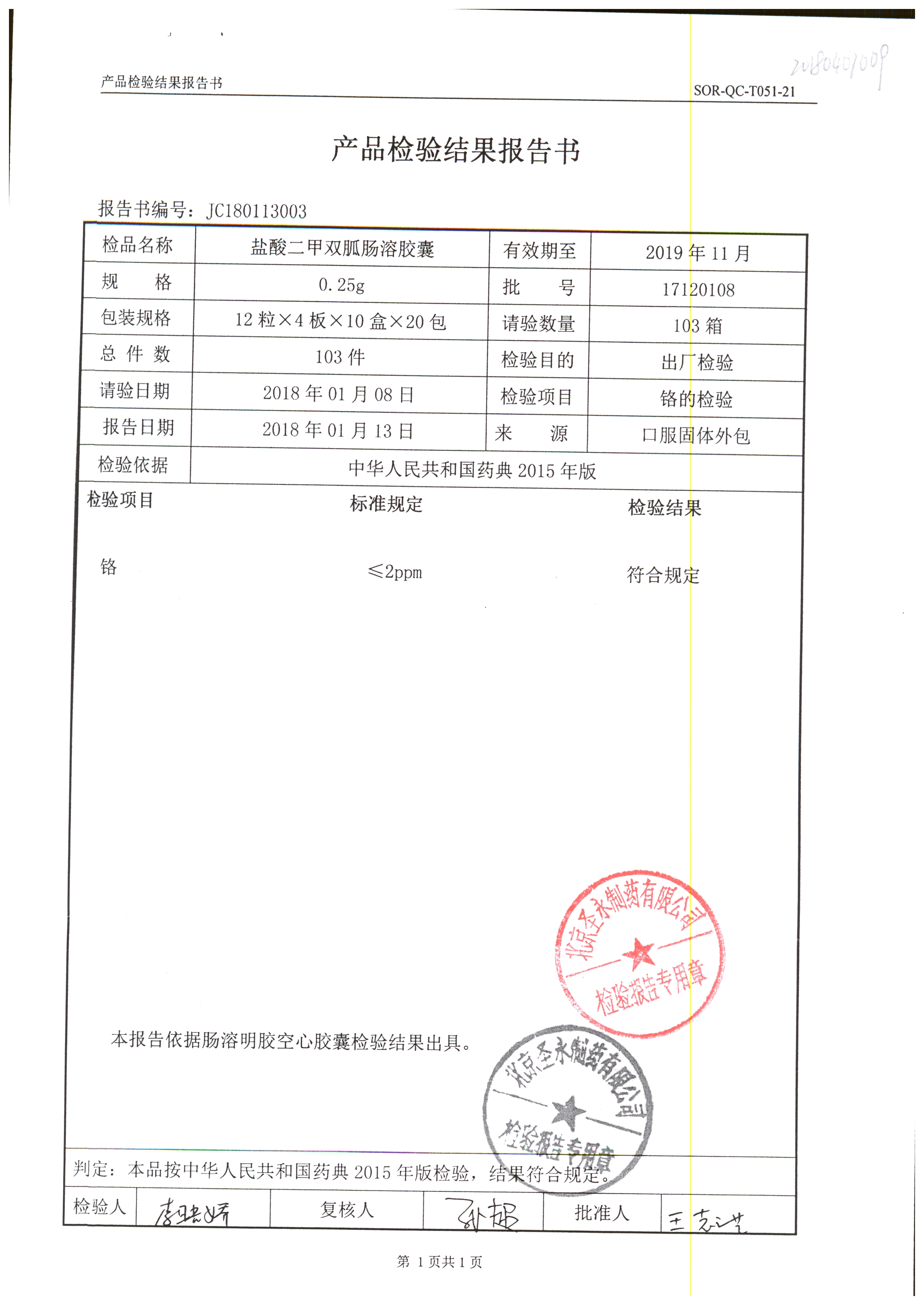 鹽酸二甲雙胍腸溶膠囊 | 0.5g*48粒 | 18011013 | 查看詳情 |