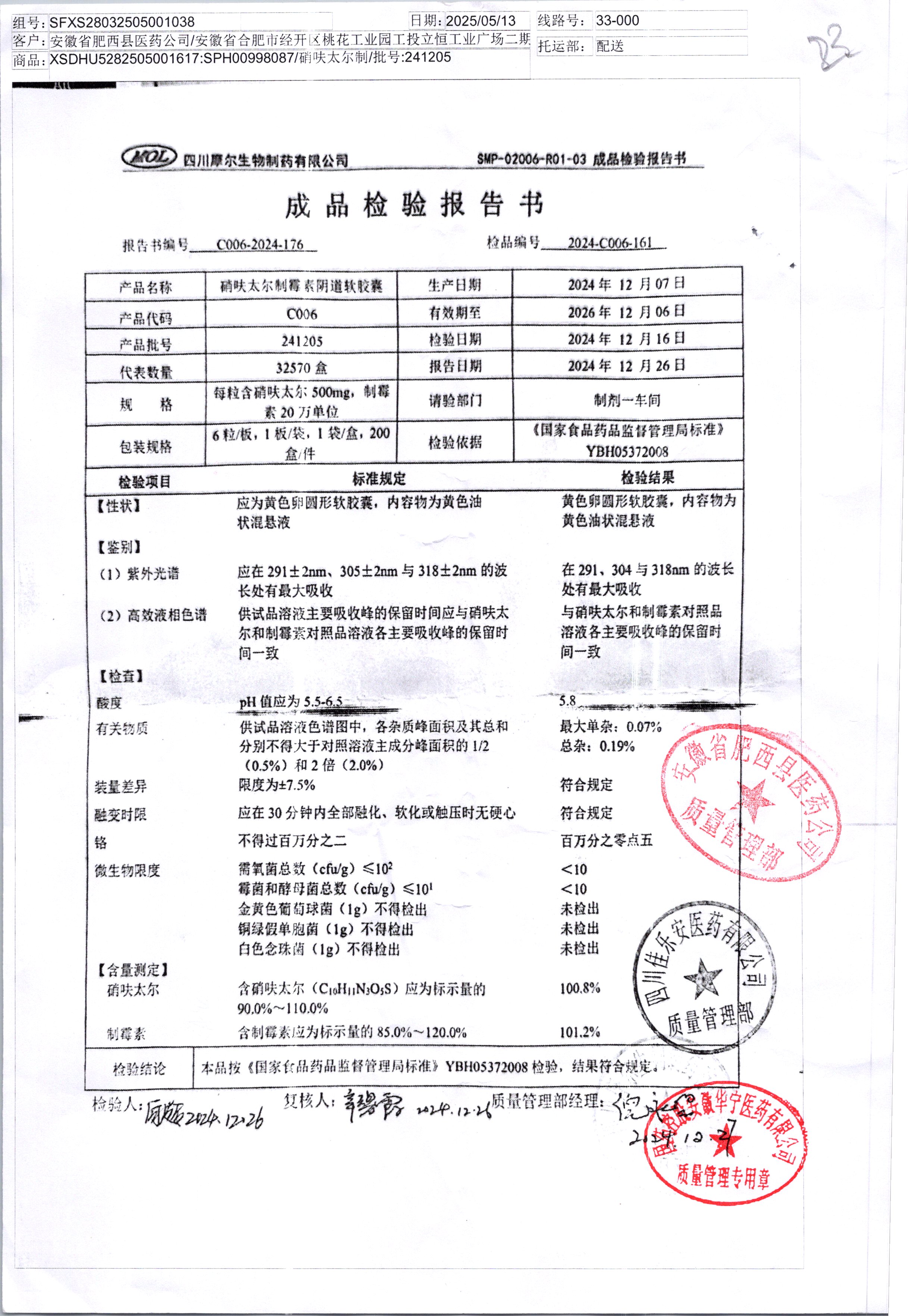 硝呋太爾制霉素陰道軟膠囊 | 500mg*6粒 | 241205 | 查看詳情 |