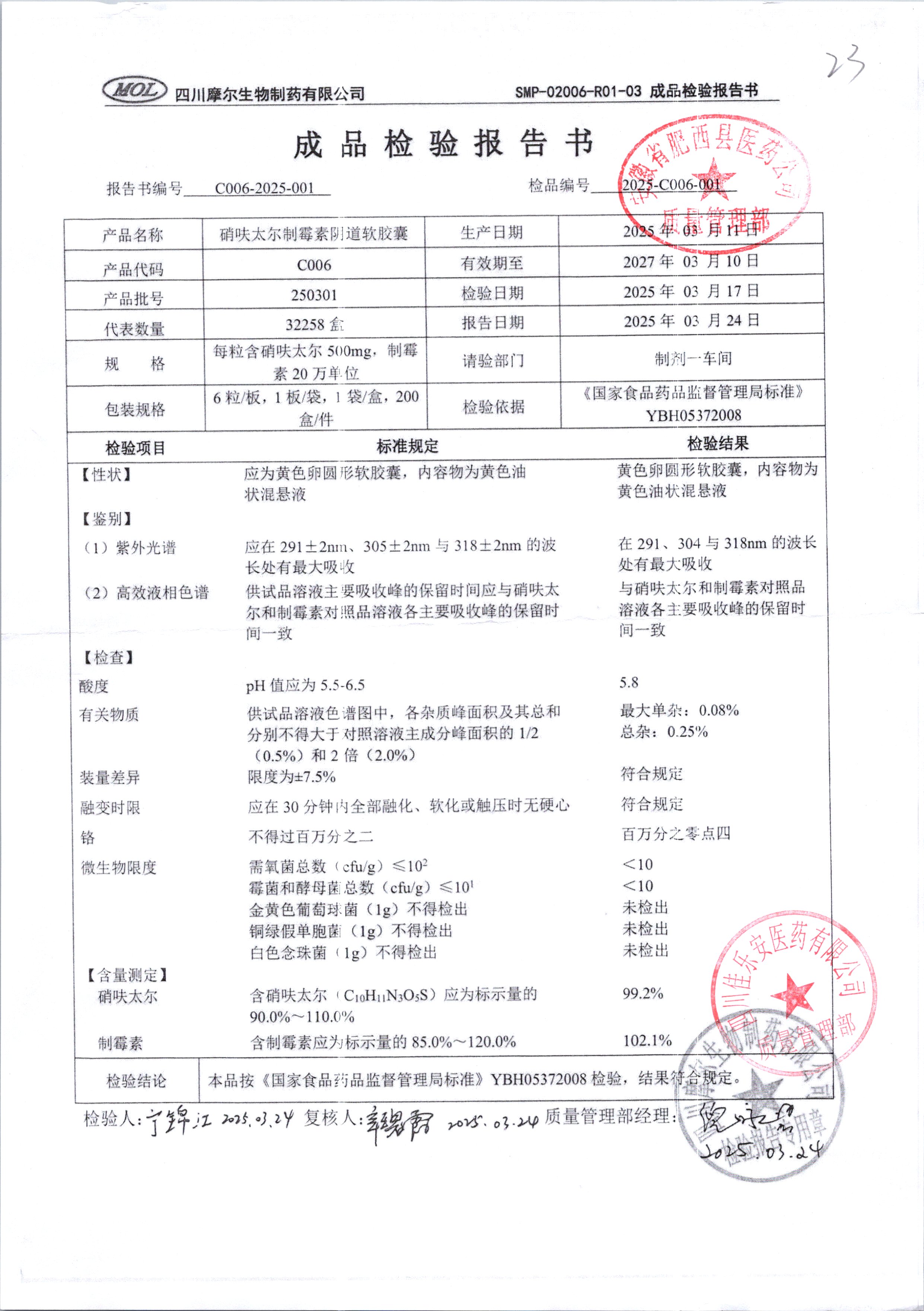 硝呋太爾制霉素陰道軟膠囊 | 500mg*6粒 | 250301 | 查看詳情 |
