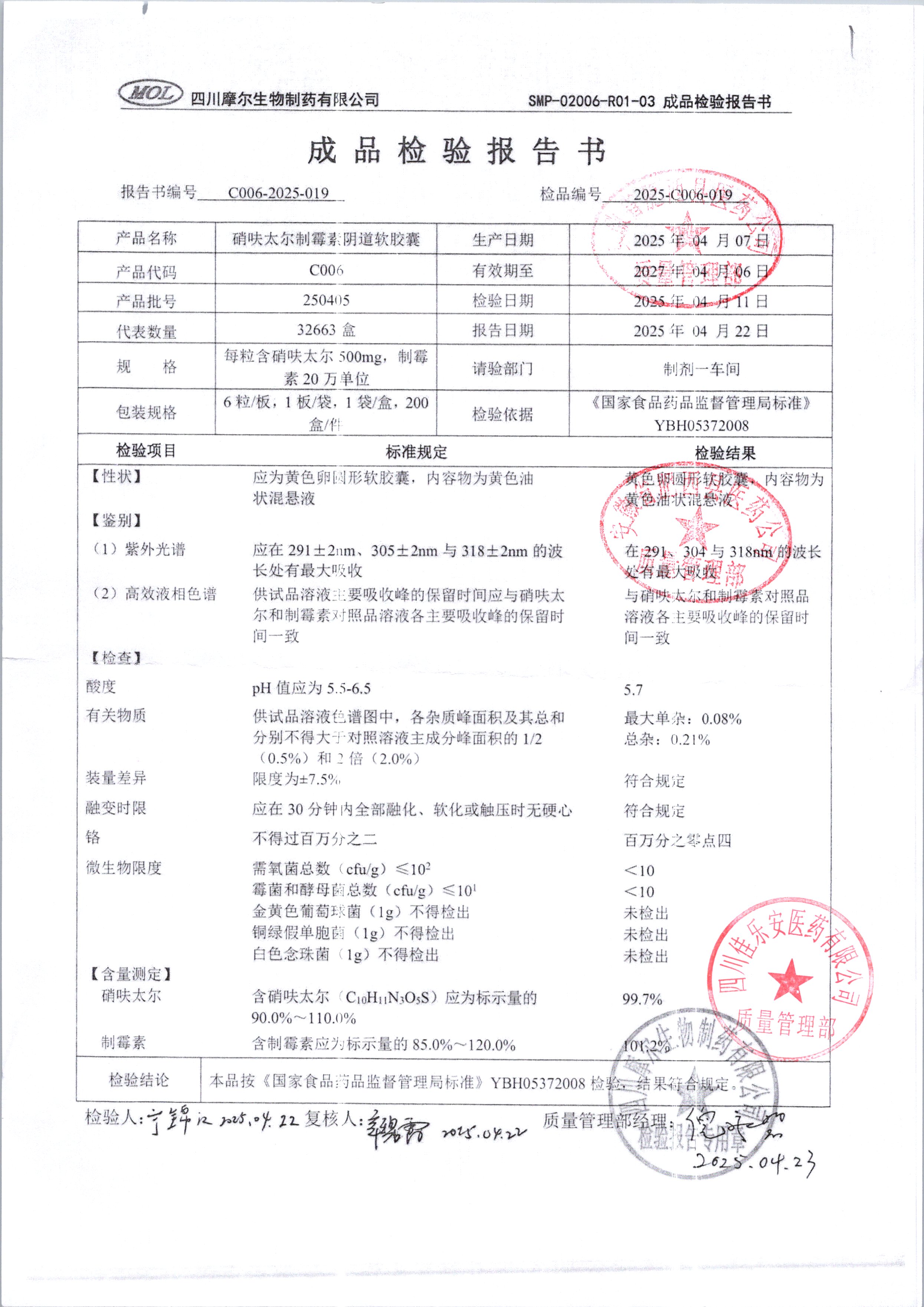 名稱 | 規(guī)格 | 批號 | 藥檢報告 |