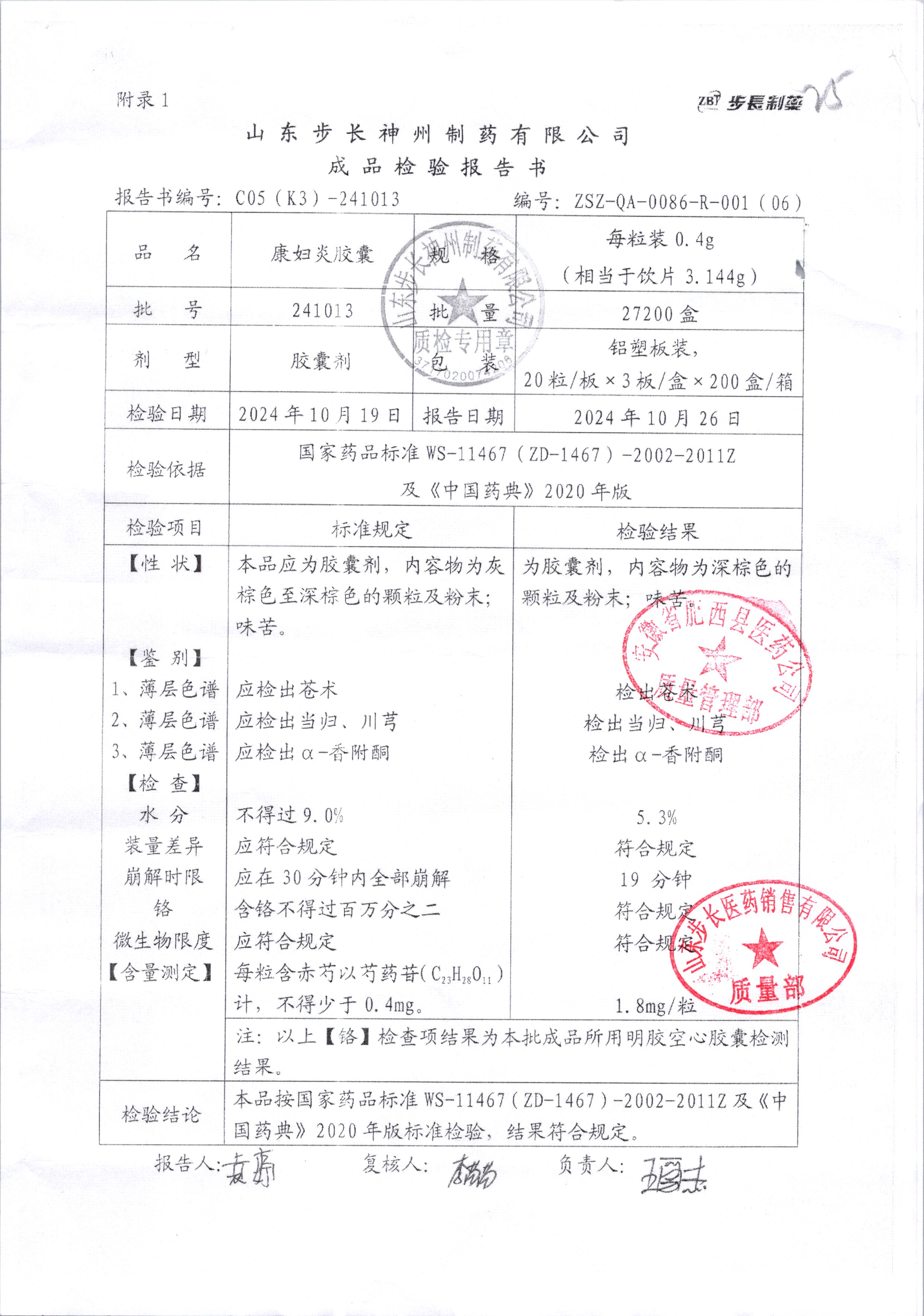 康婦炎膠囊 | 0.4g*60粒 | 240105 | 查看詳情 |