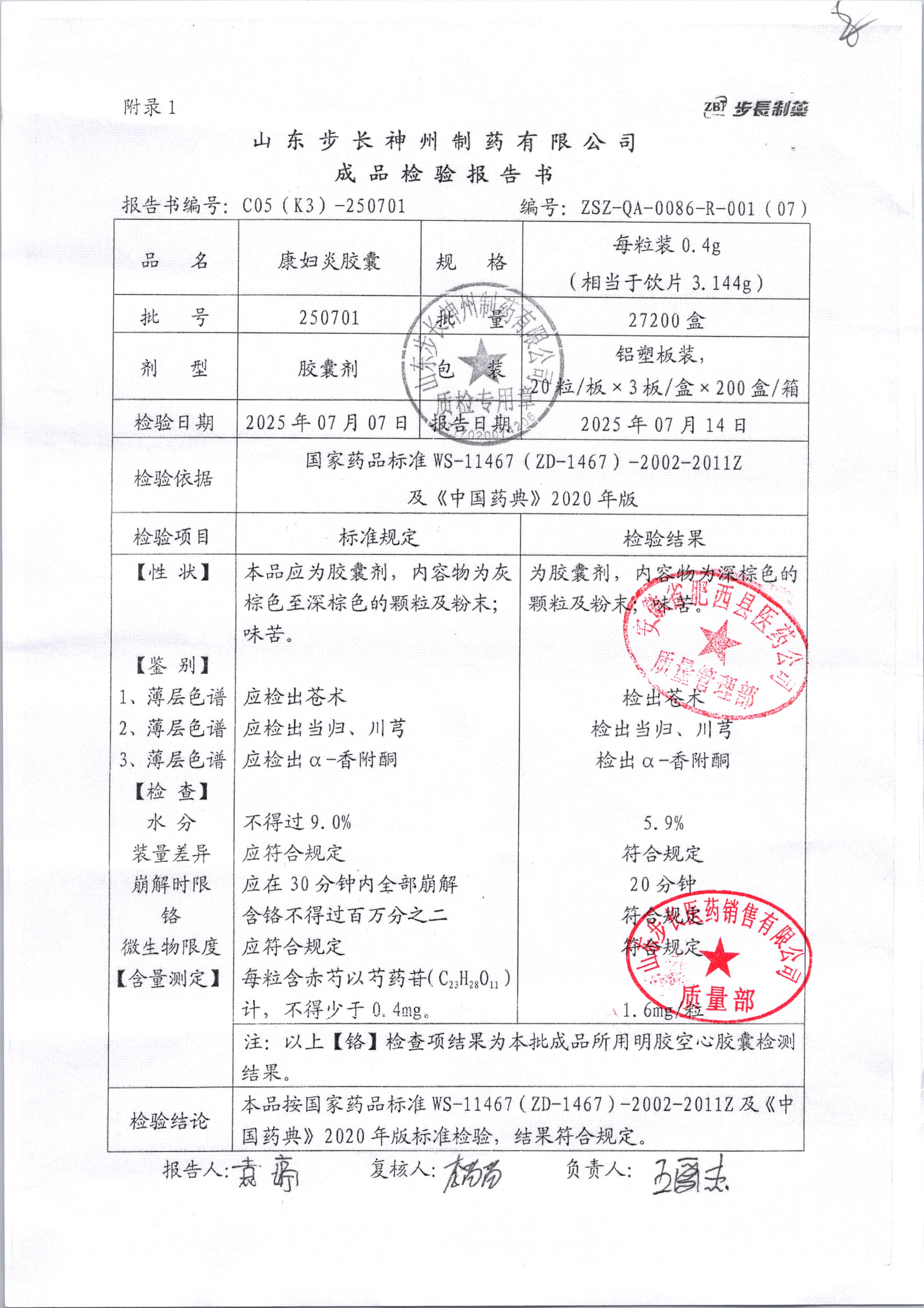 康婦炎膠囊 | 0.4g*60粒 | 250703 | 查看詳情 |