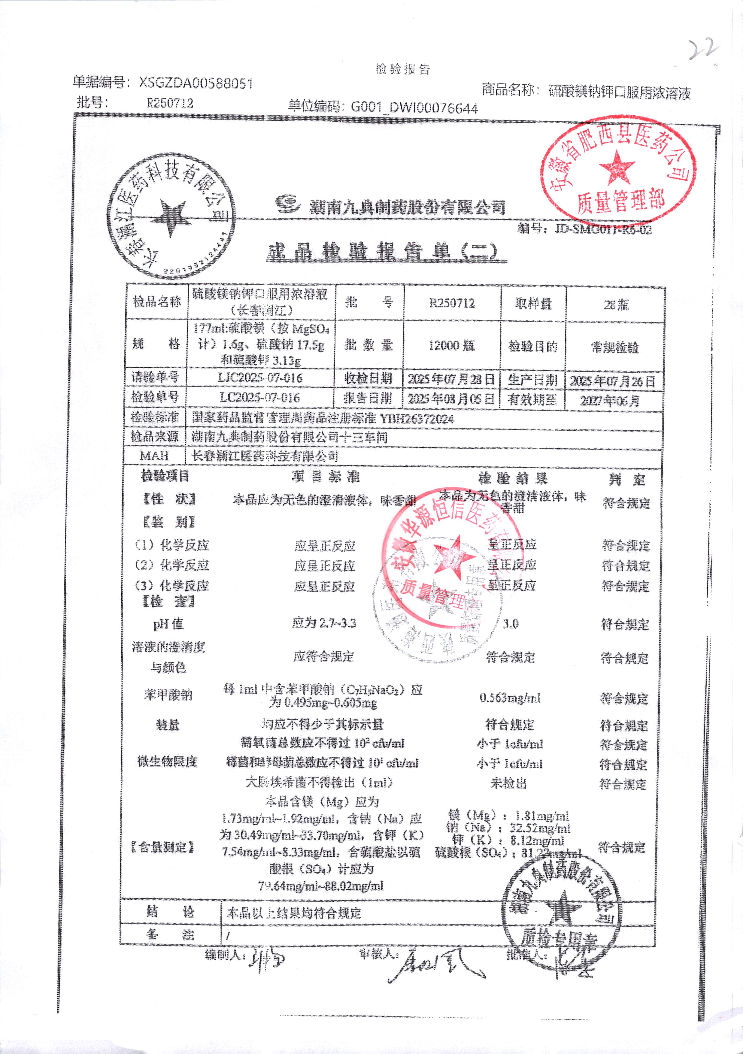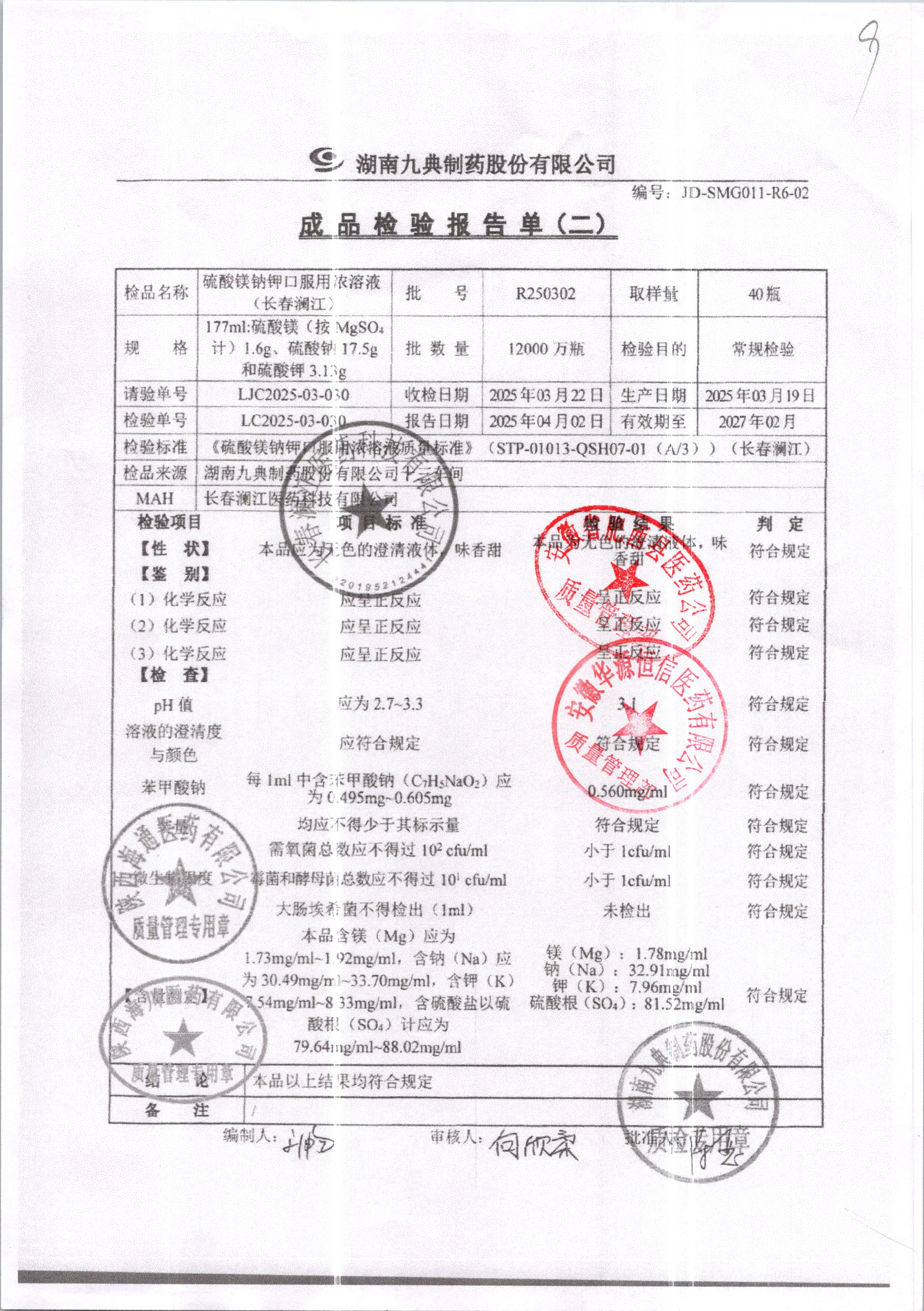 硫酸鎂鈉鉀口服用濃溶液 | 177ml | R250302 | 查看詳情 |
