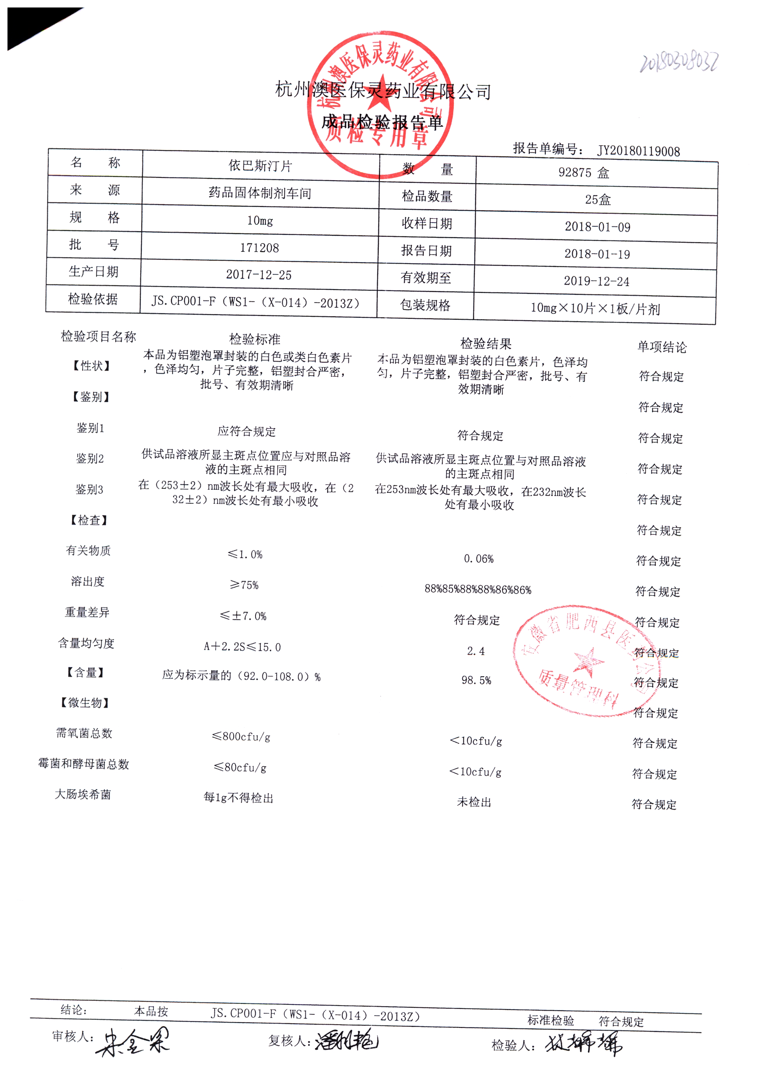 依巴斯汀片 | 10mg*10s | 171208 | 查看詳情 |