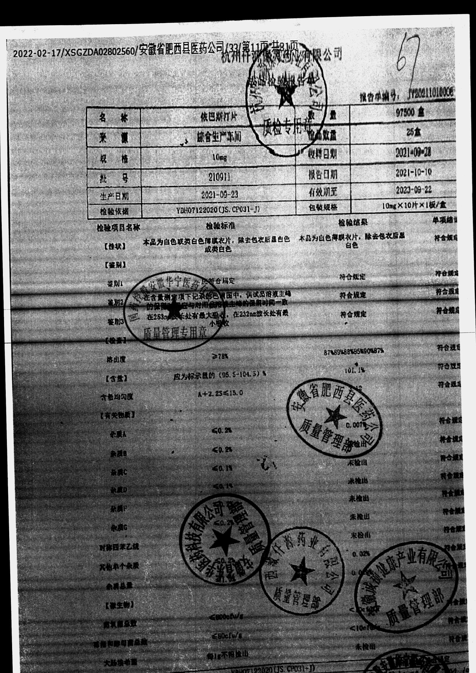 依巴斯汀片 | 10mg*10s | 210911 | 查看詳情 |