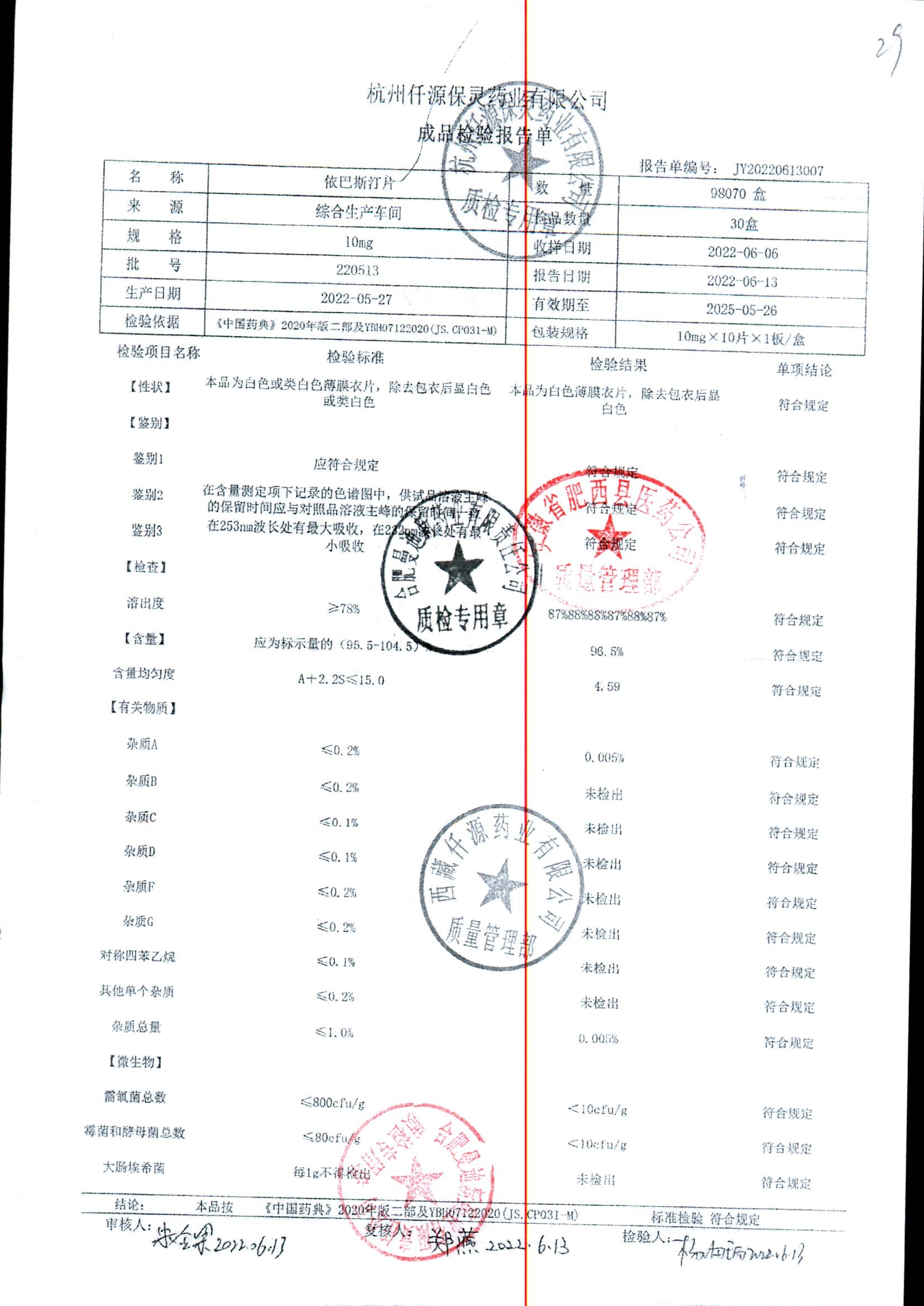 依巴斯汀片 | 10mg*10s | 220513 | 查看詳情 |