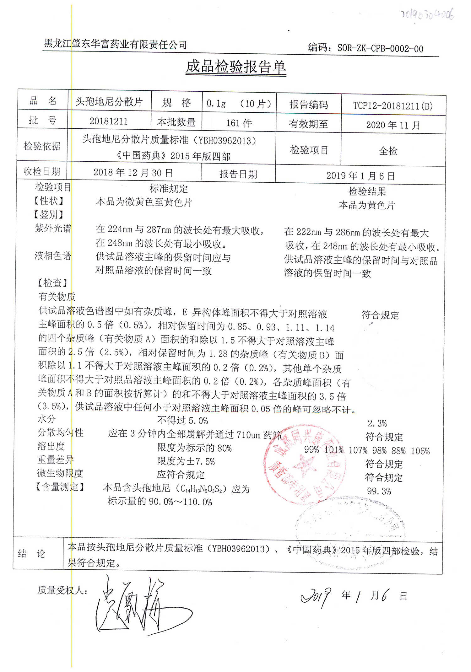 頭孢地尼分散片 | 0.1g*10s | 20181211 | 查看詳情 |
