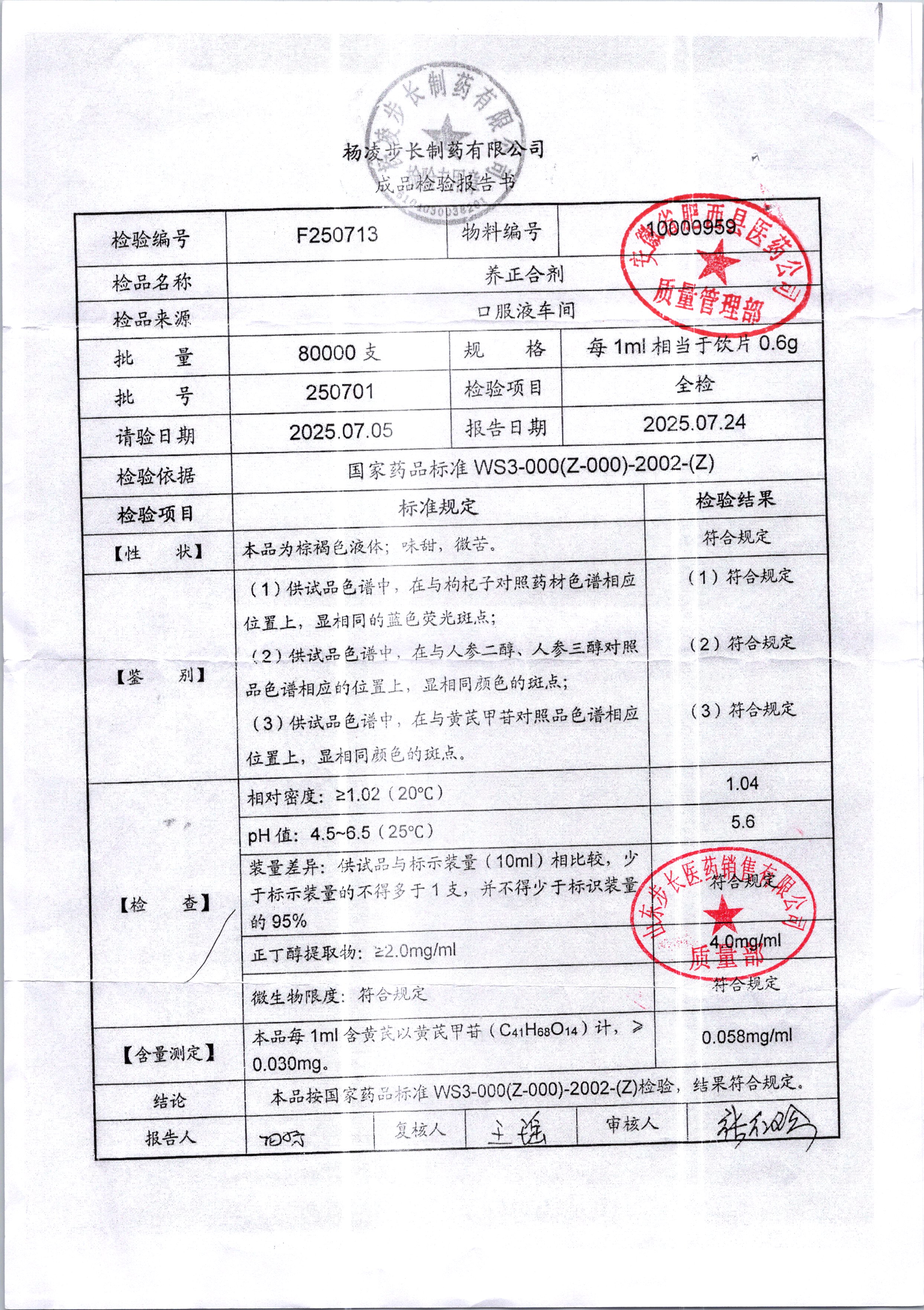 養(yǎng)正合劑 | 1ml | 250701 | 查看詳情 |