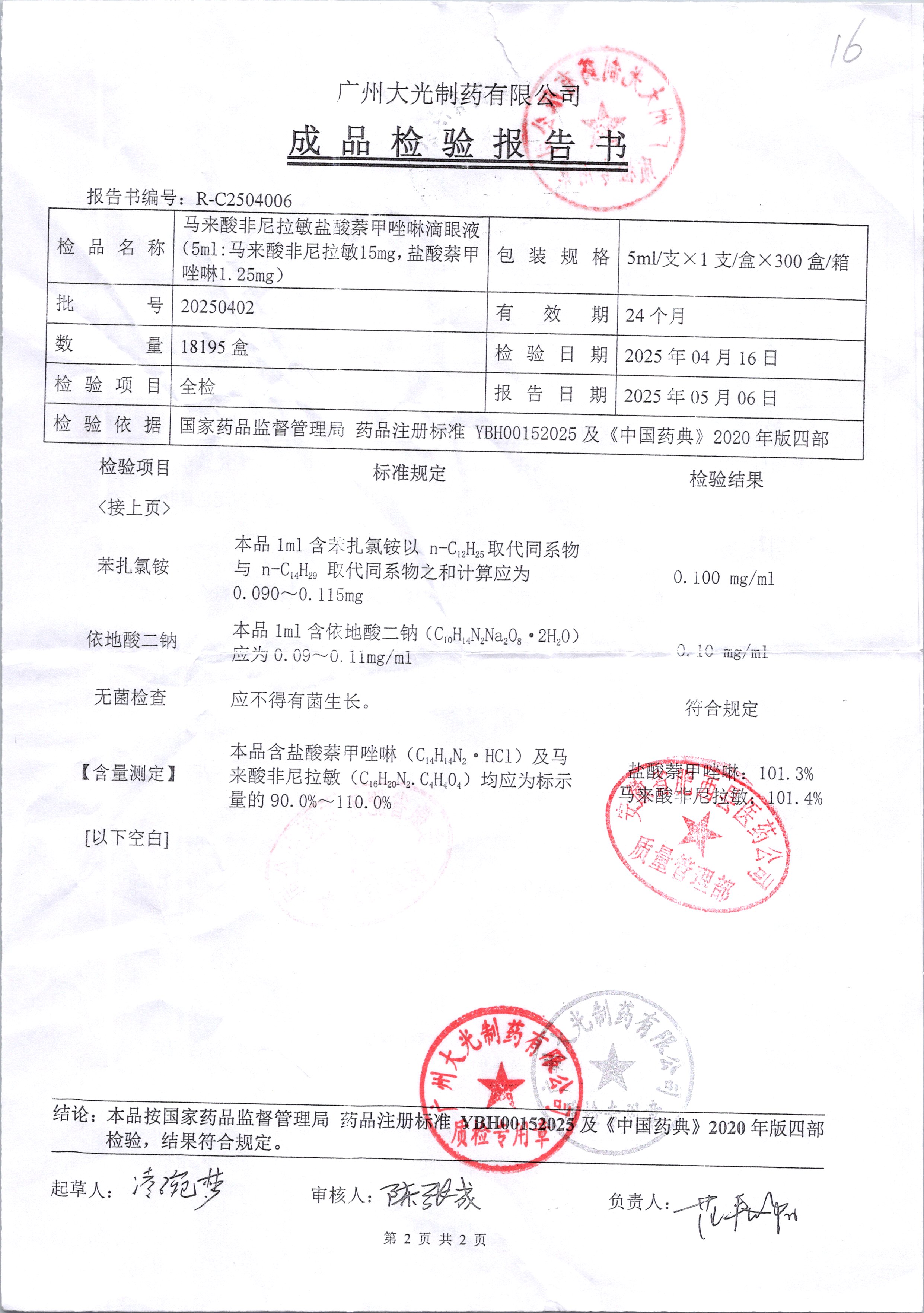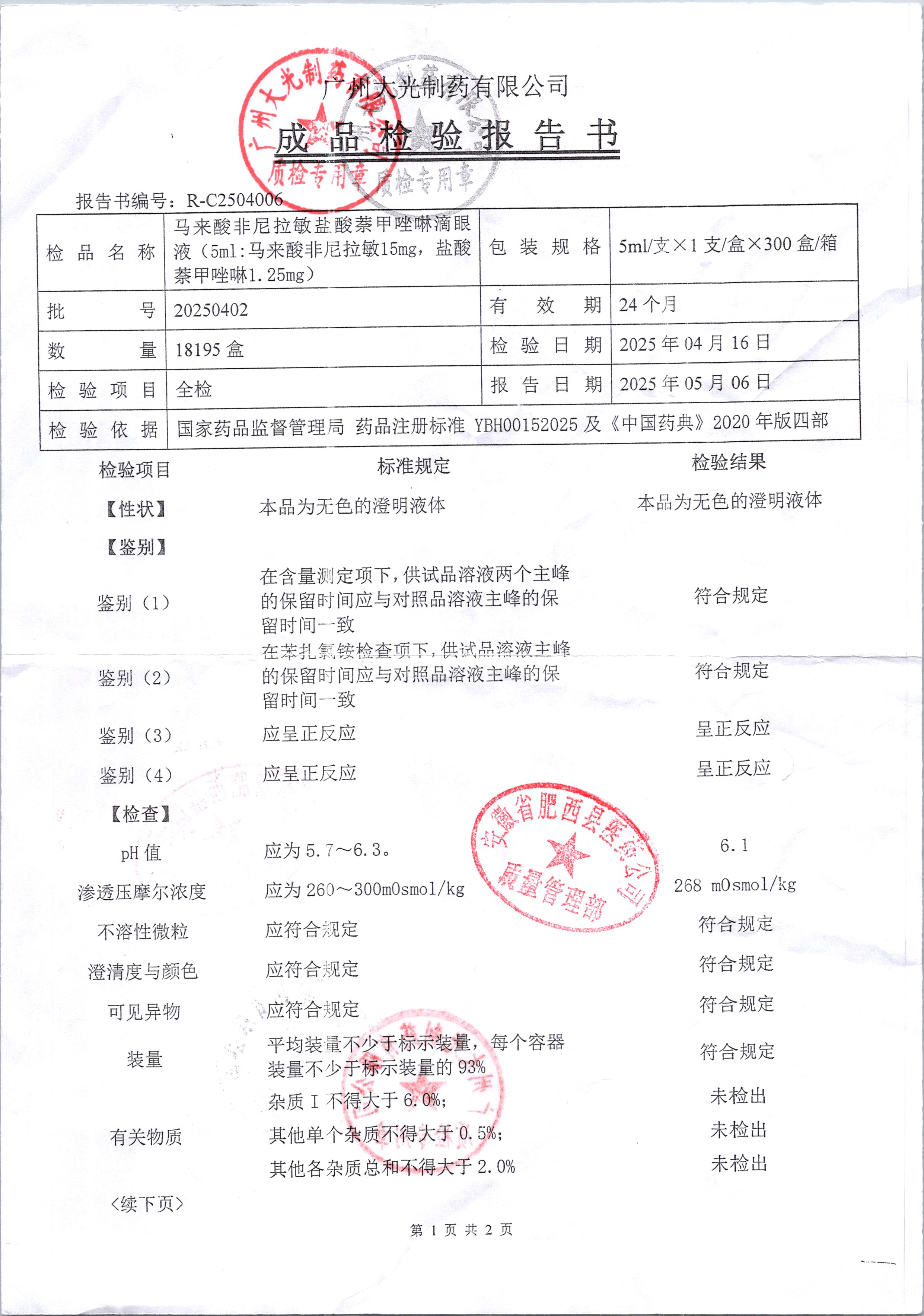 馬來酸非尼拉敏鹽酸萘甲唑啉滴眼液 5ml 20250402 查看詳情