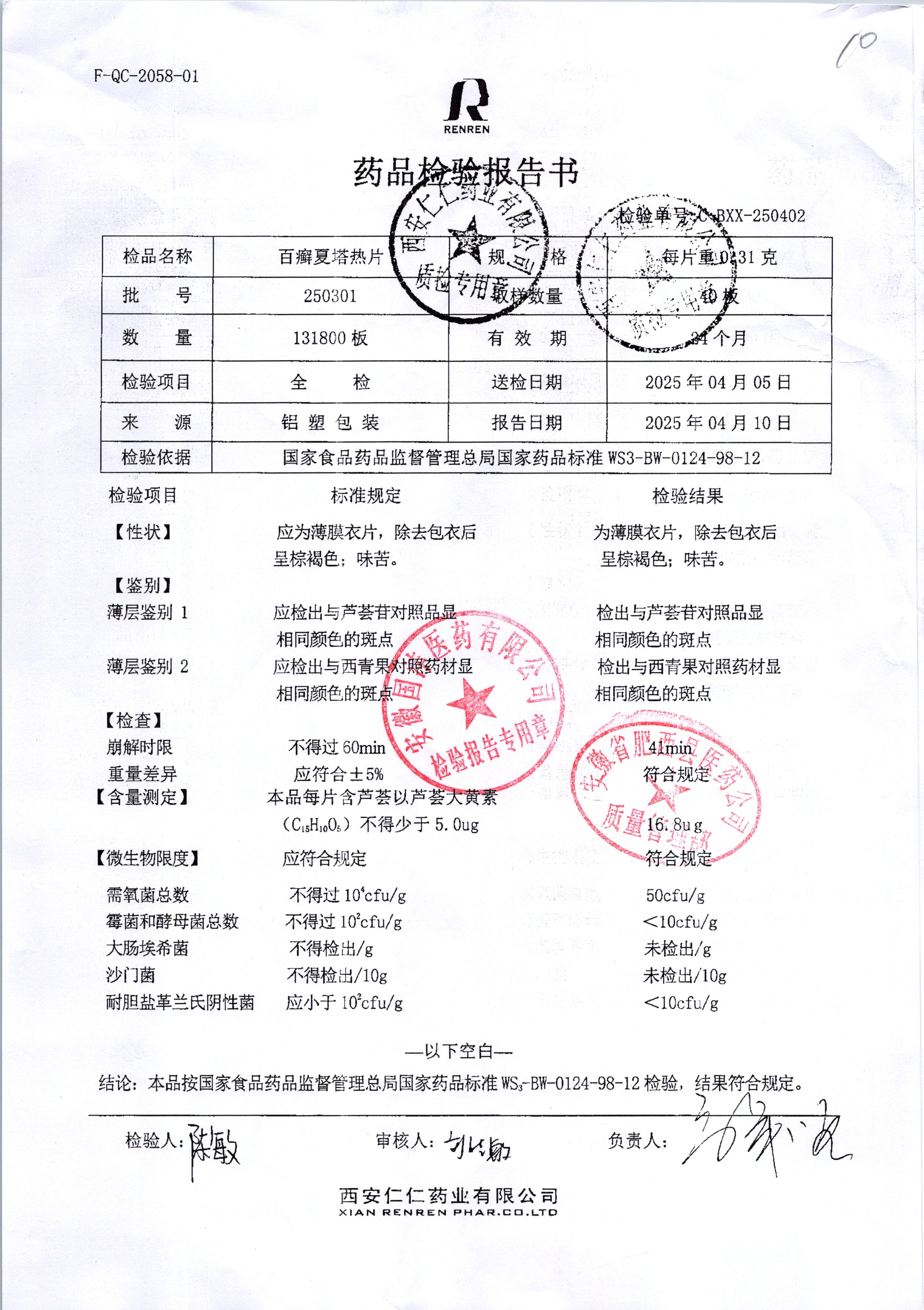 名稱 規(guī)格 批號(hào) 藥檢報(bào)告