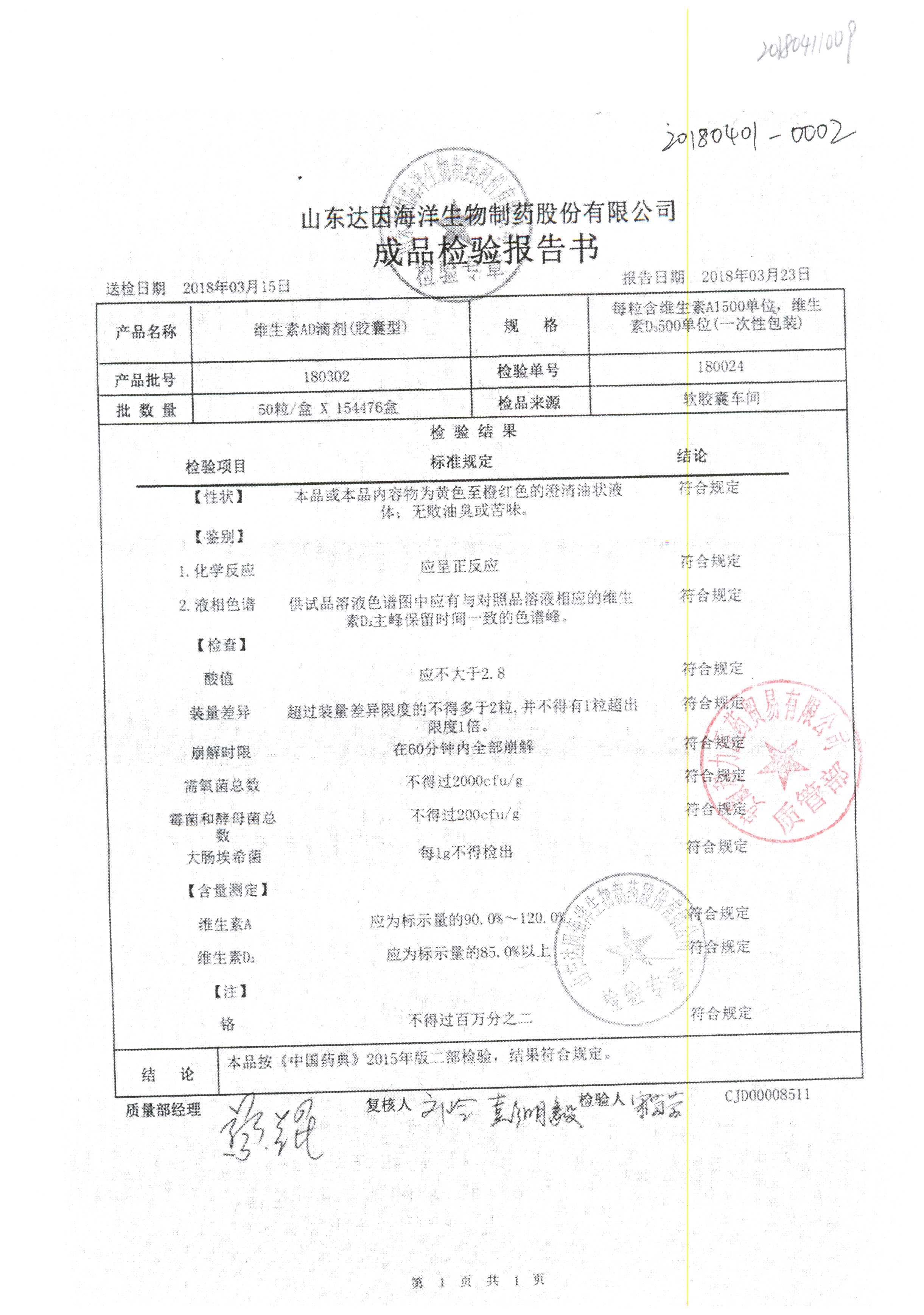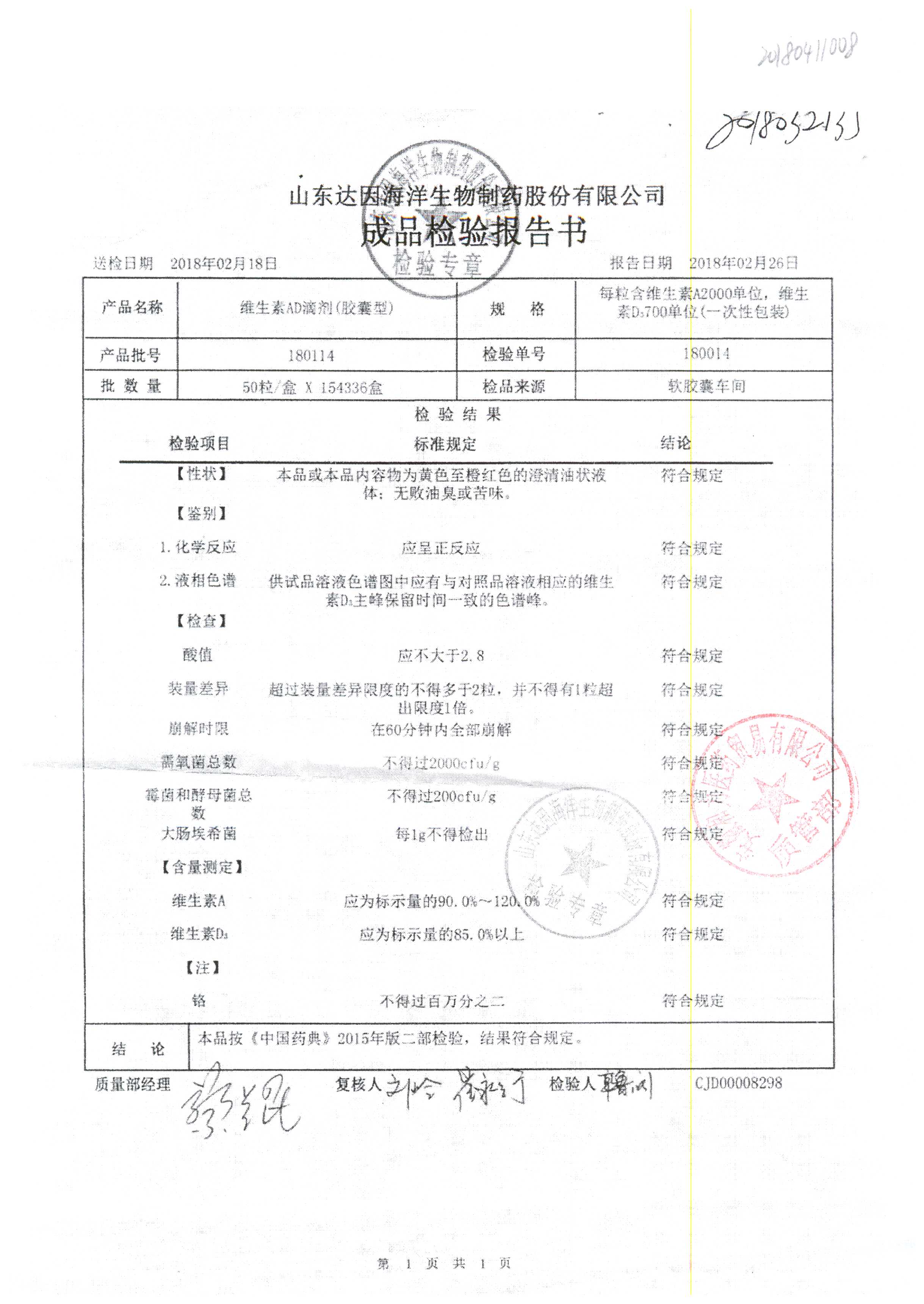 維生素AD滴劑(膠囊型) | 2000單位:700單位*50粒 | 180403 | 查看詳情 |