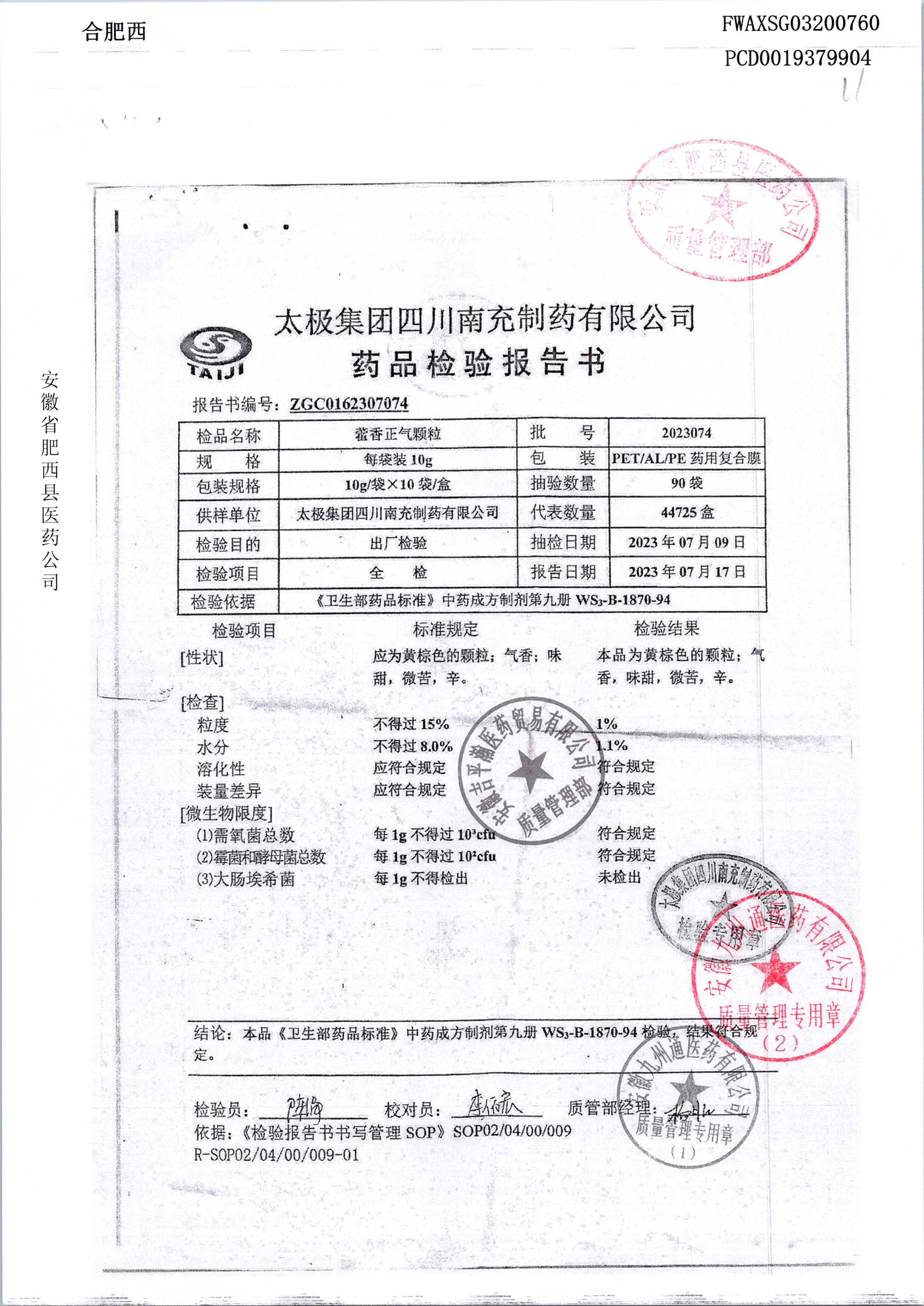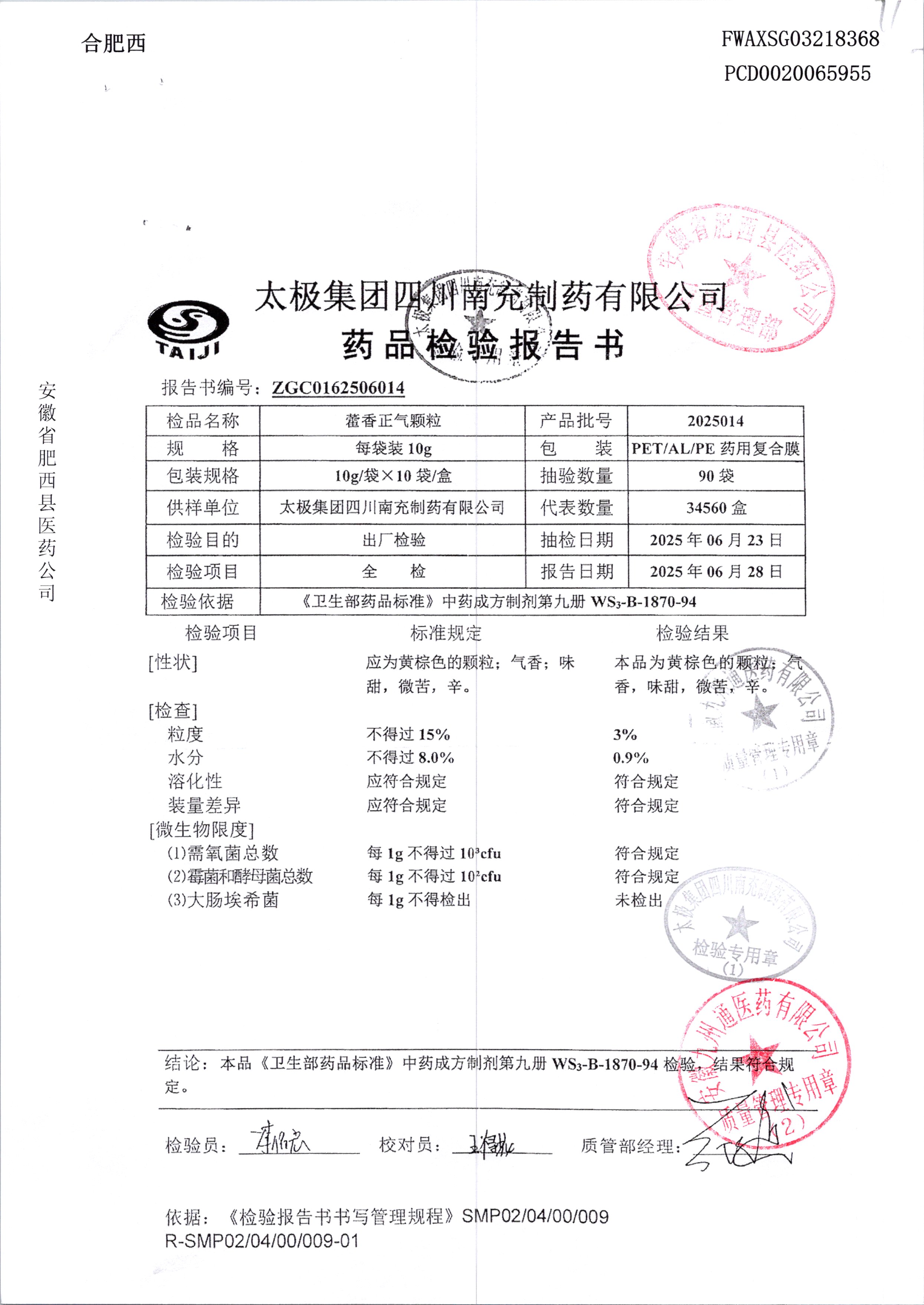 名稱 規(guī)格 批號 藥檢報告