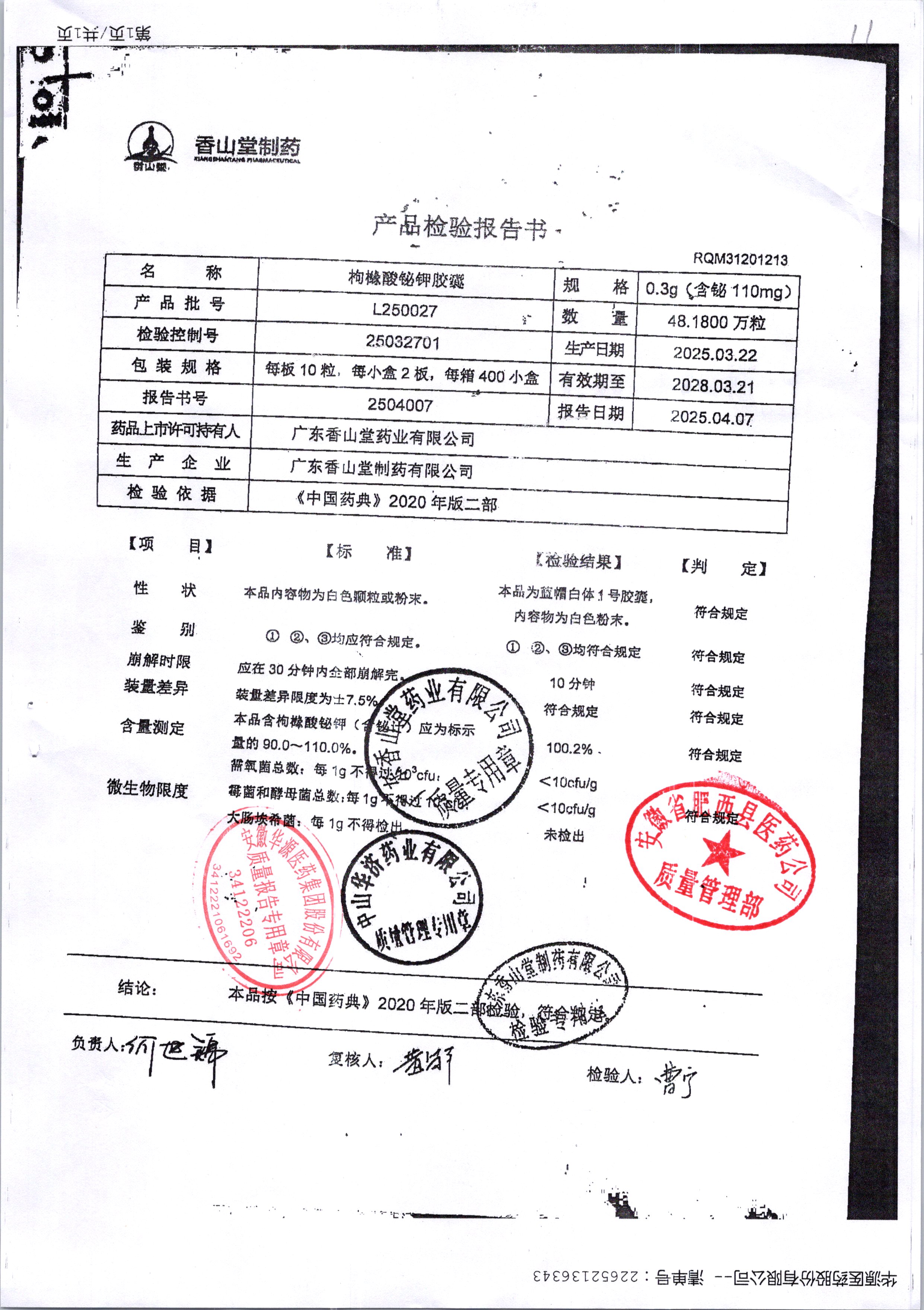 名稱 規(guī)格 批號 藥檢報(bào)告