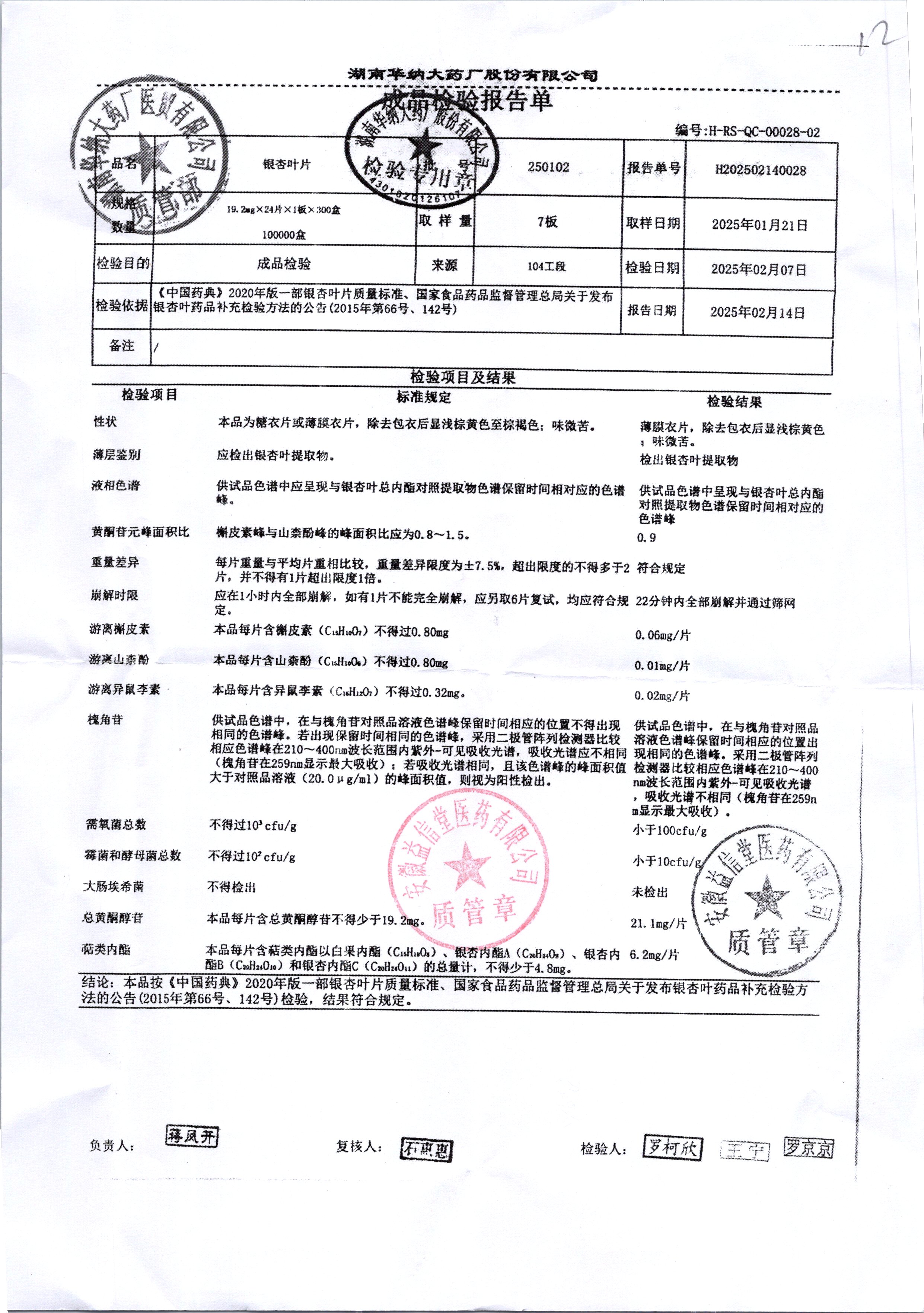 名稱 規(guī)格 批號 藥檢報告