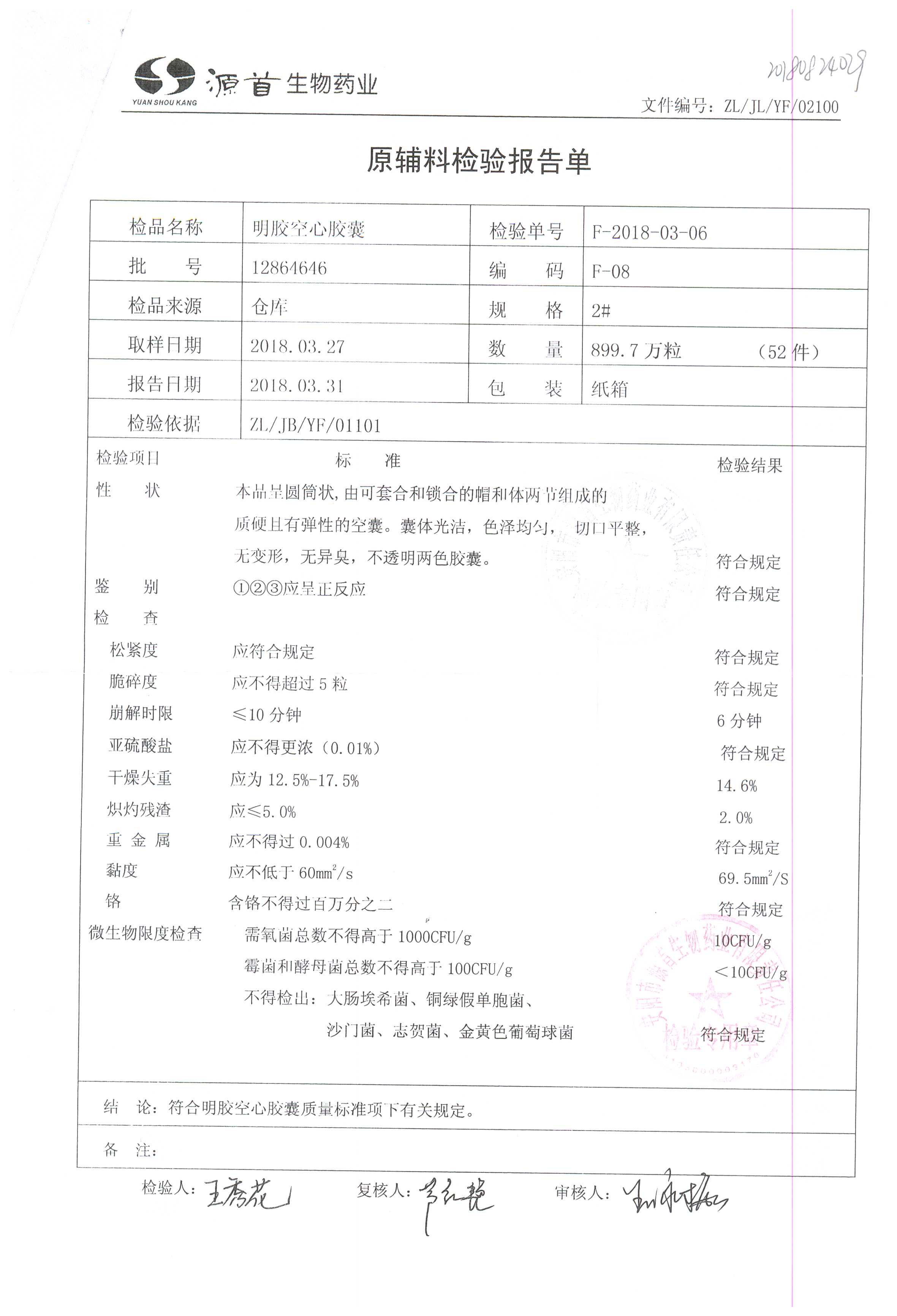 蠟樣芽孢桿菌活菌膠囊(源首) | 0.25g | 20180504(2/3) | 查看詳情 |