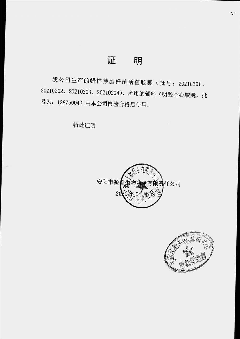 蠟樣芽孢桿菌活菌膠囊(源首) | 0.25g | 20210204(3/3) | 查看詳情 |