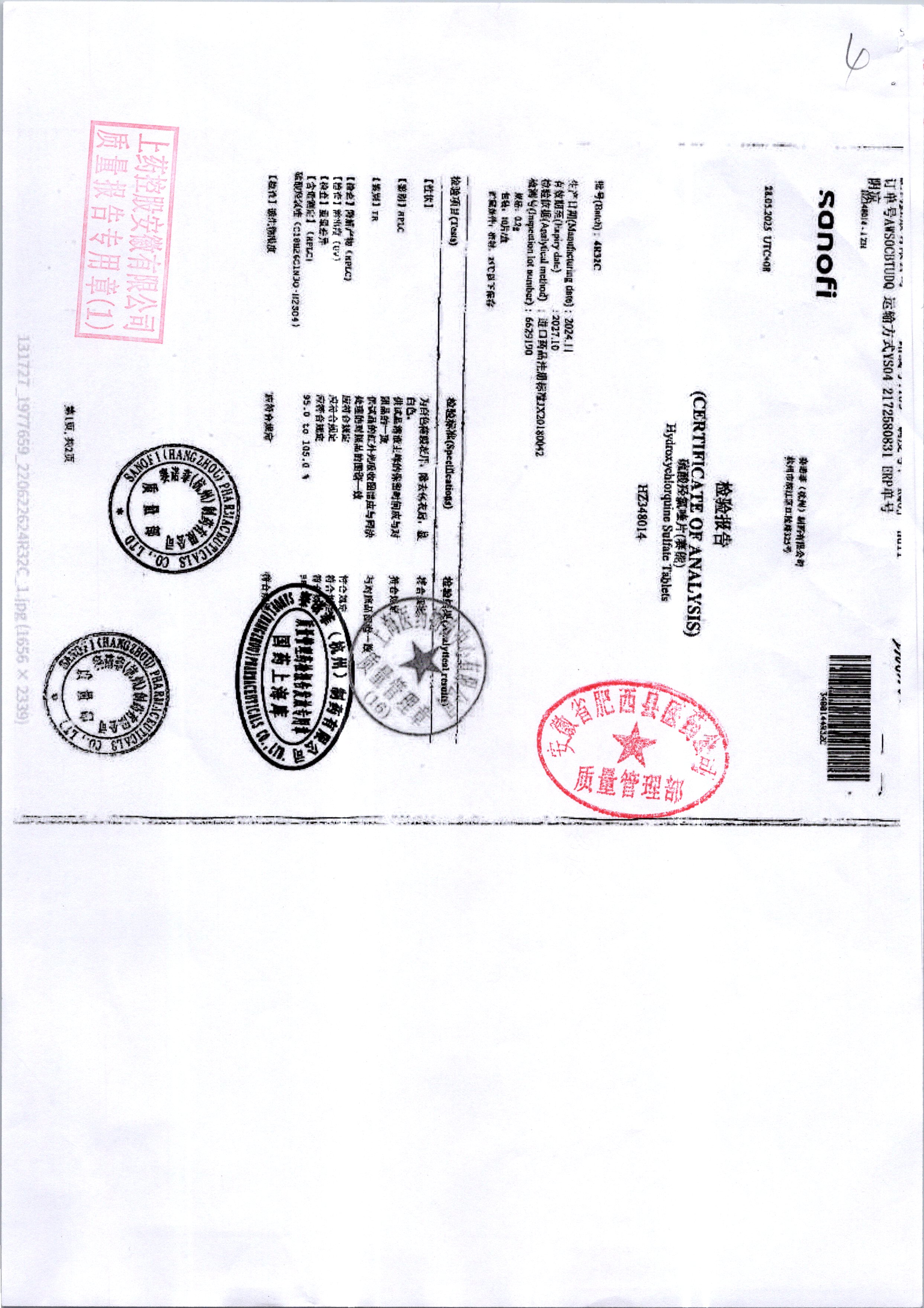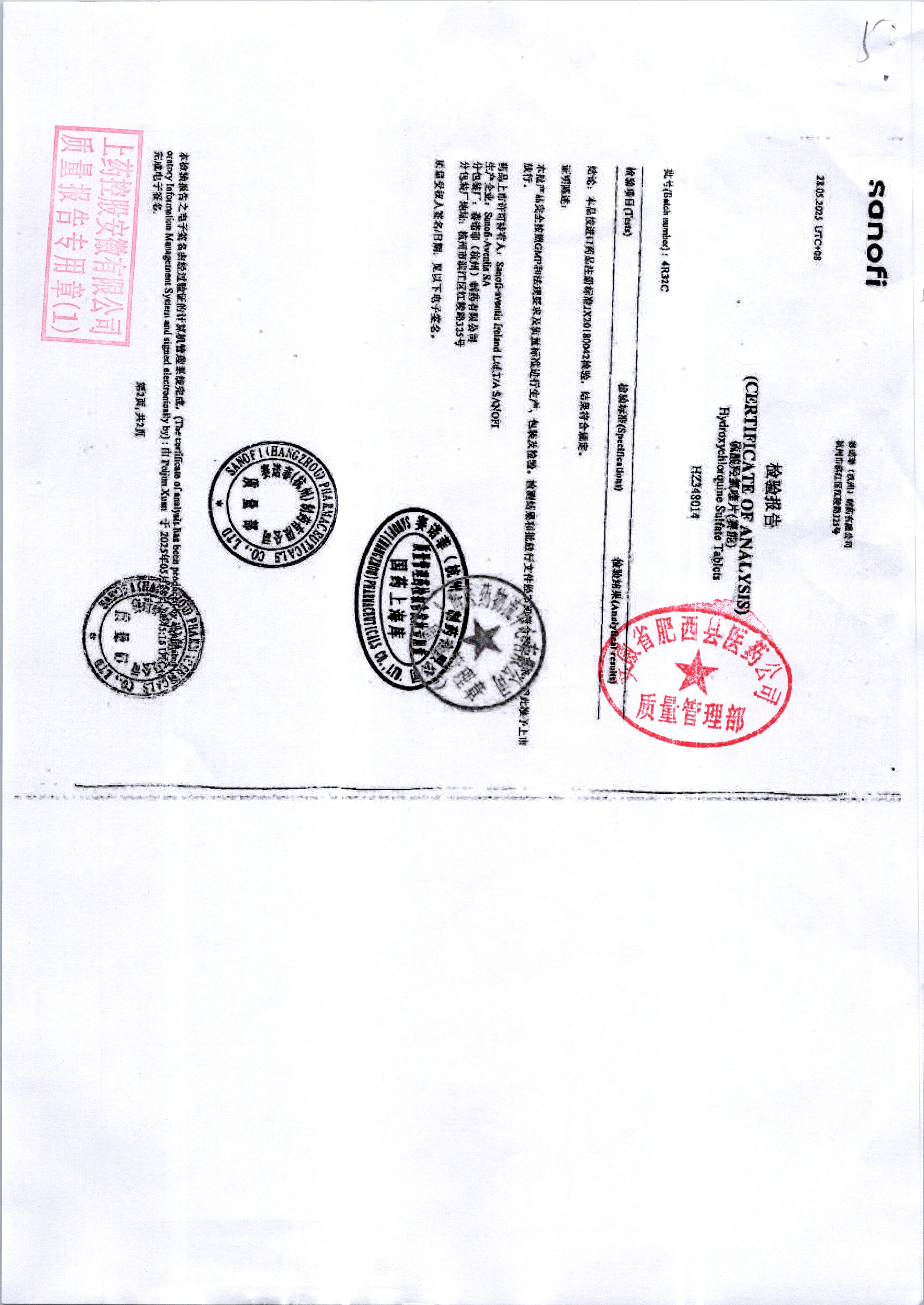 硫酸羥氯喹片 | 0.2*10s | 4R32C/1 | 查看詳情 |