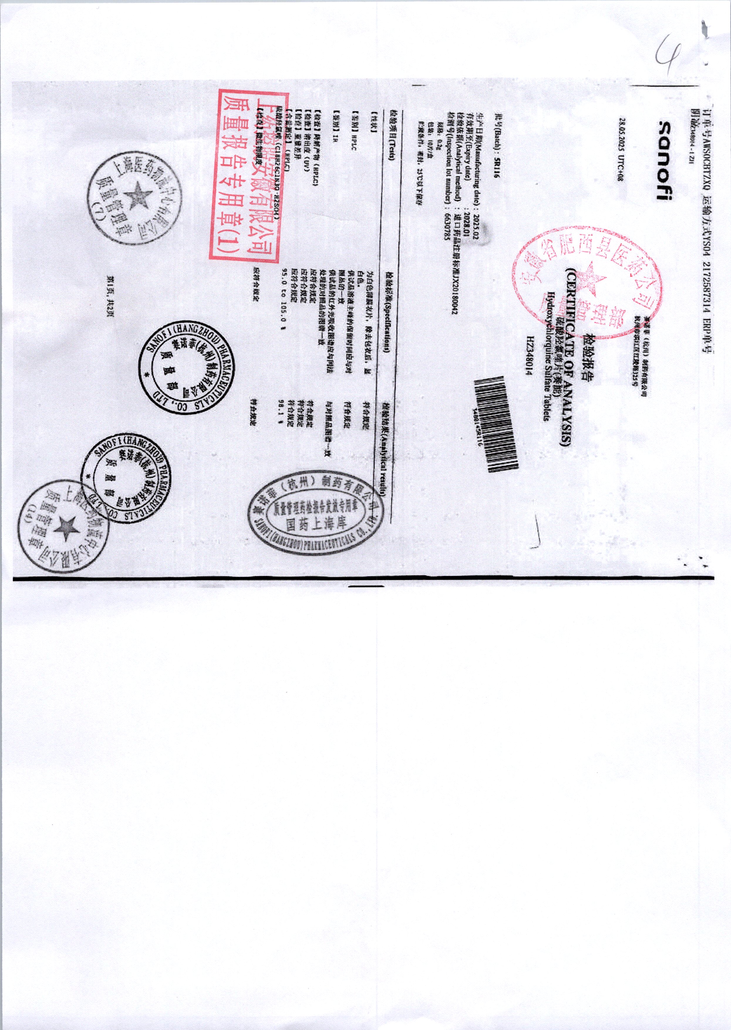 硫酸羥氯喹片 | 0.2*10s | 4R32C/2 | 查看詳情 |