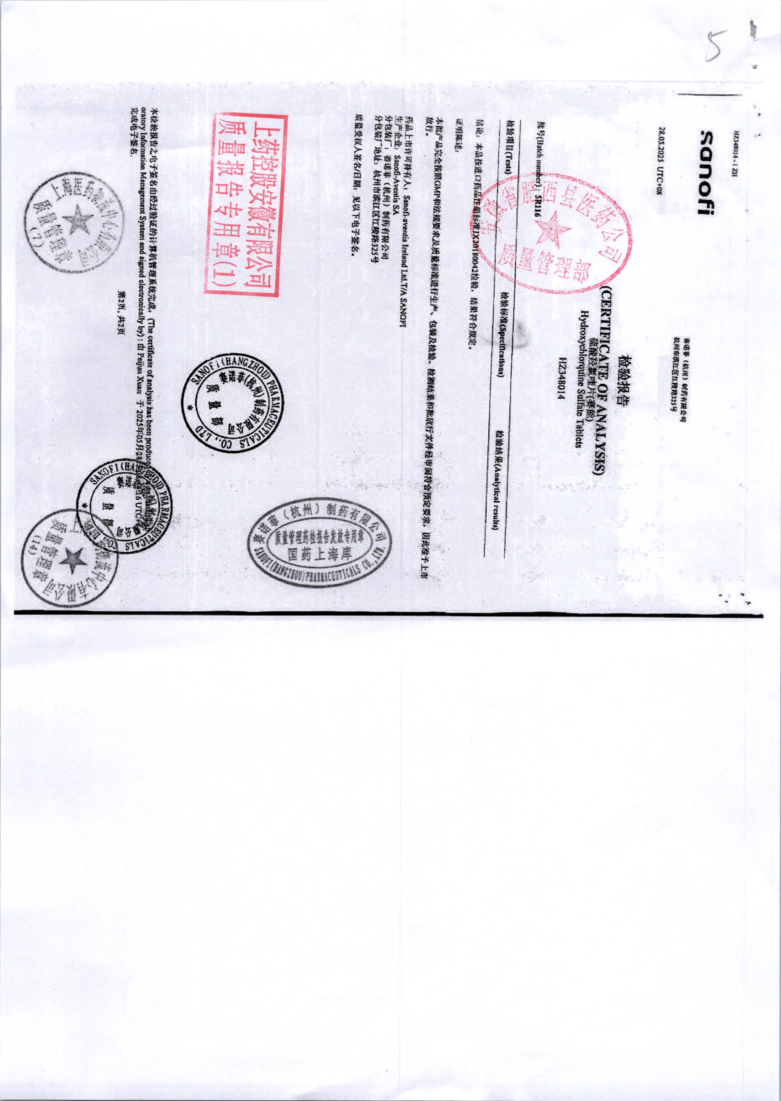 硫酸羥氯喹片 | 0.2*10s | 5R116/1 | 查看詳情 |