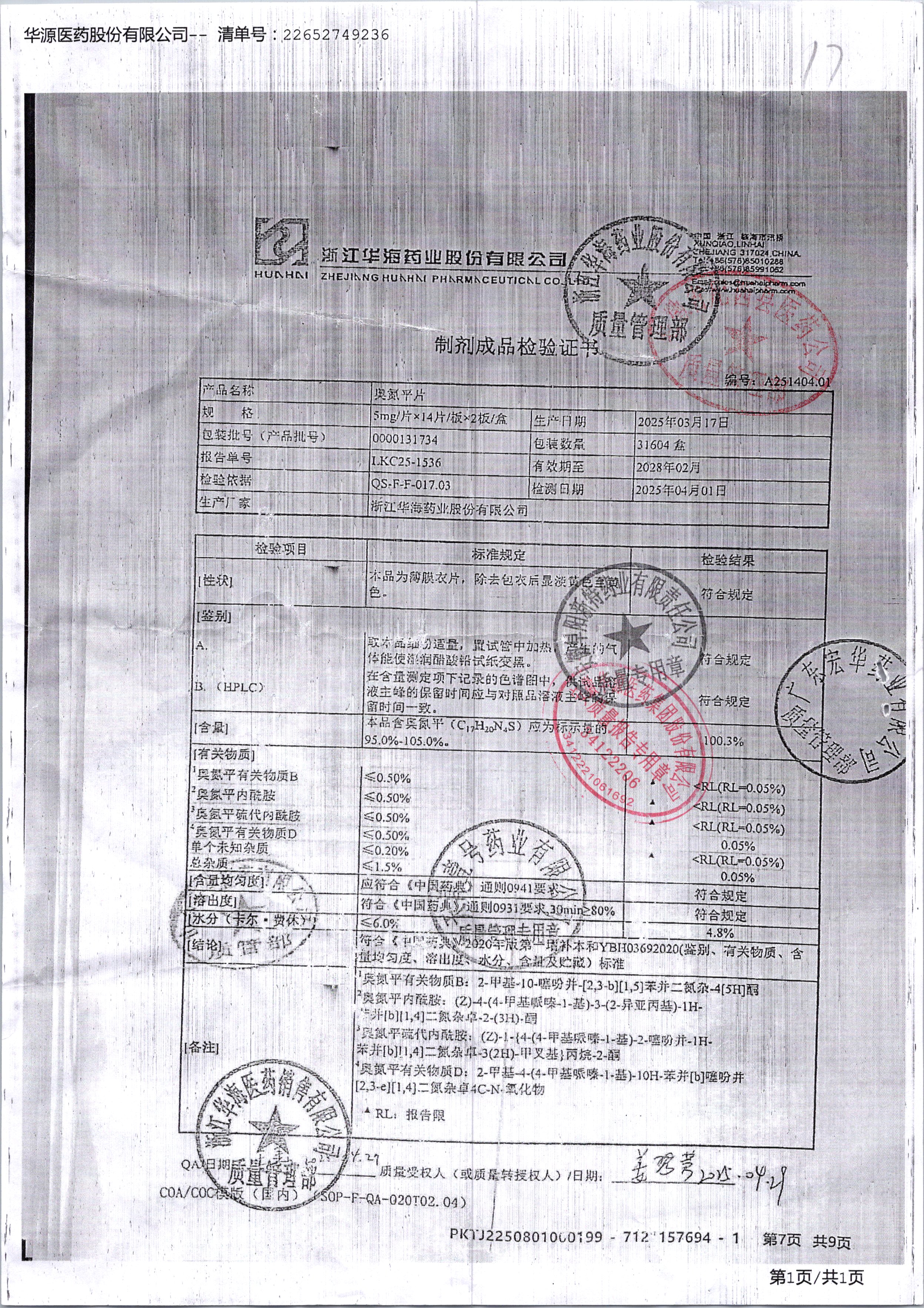 名稱 規(guī)格 批號(hào) 藥檢報(bào)告