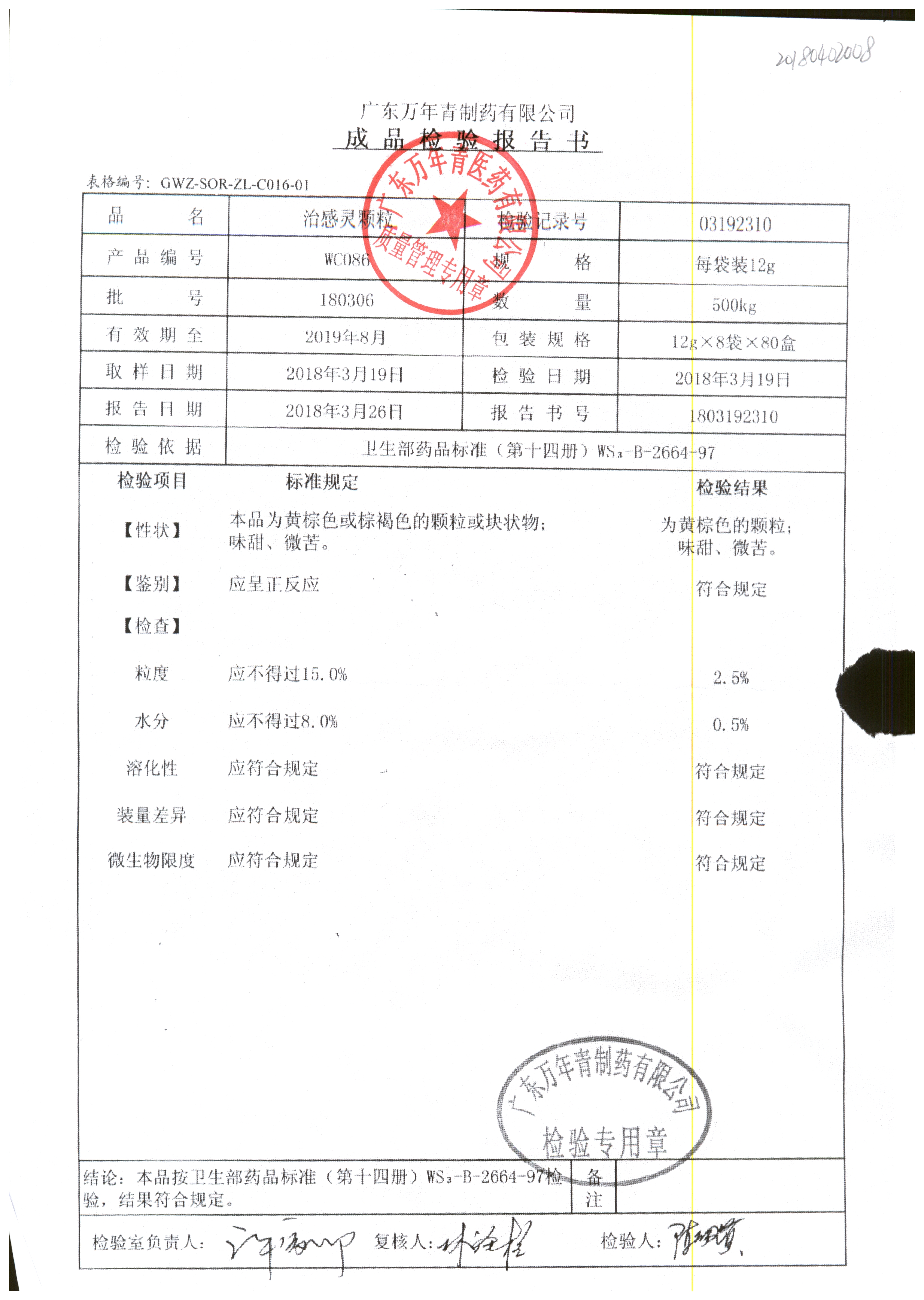 名稱 規(guī)格 批號(hào) 藥檢報(bào)告