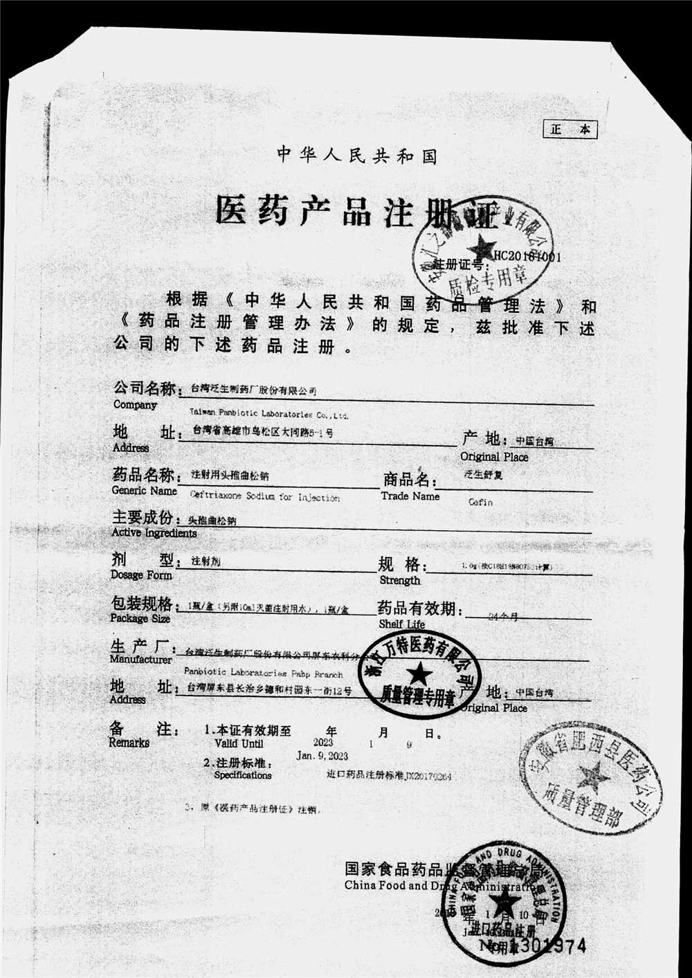 注射用頭孢曲松鈉 | 2.0g | 1712006(2/4) | 查看詳情 |