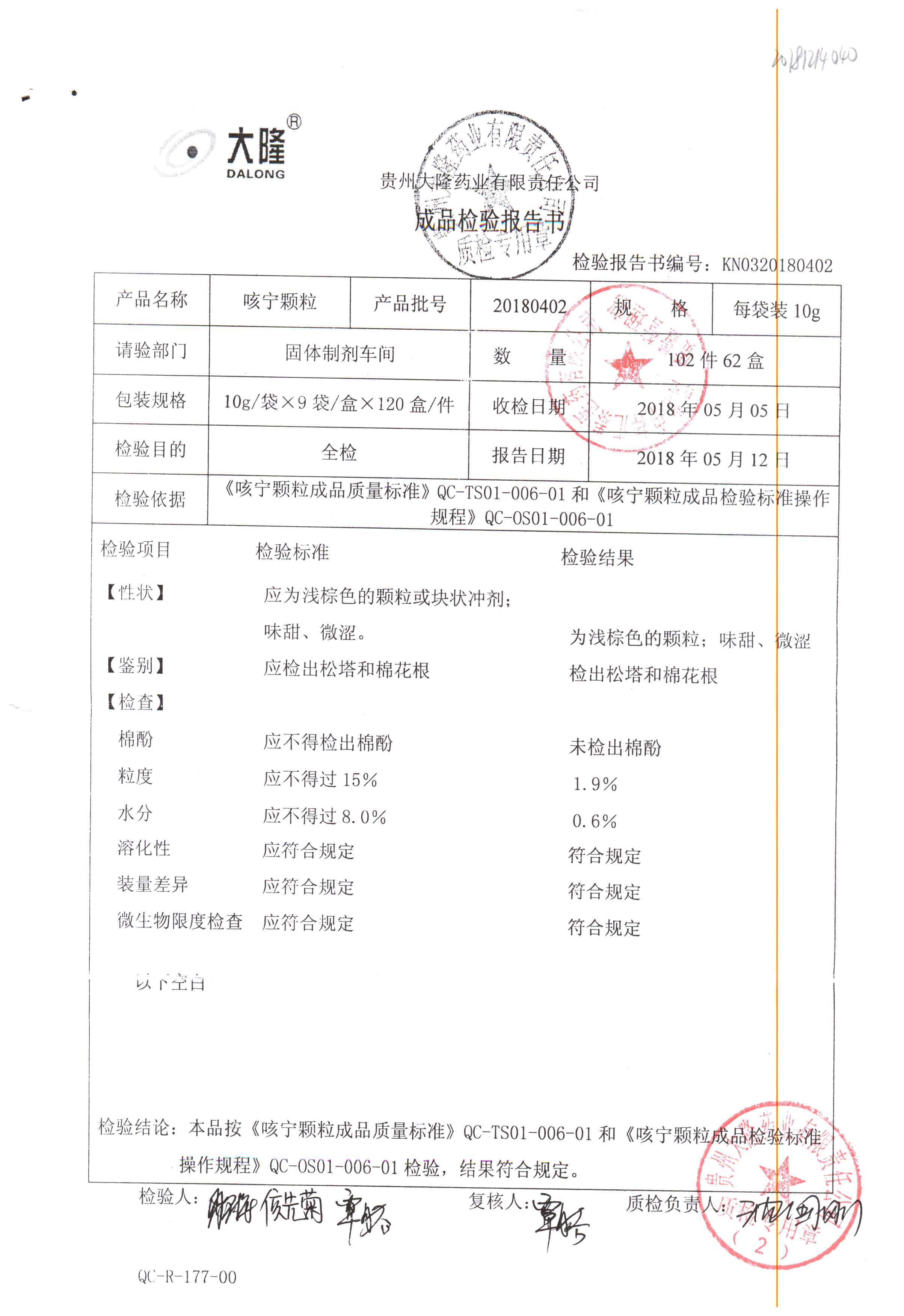 咳寧顆粒 | 10g*9袋 | 20180403 | 查看詳情 |