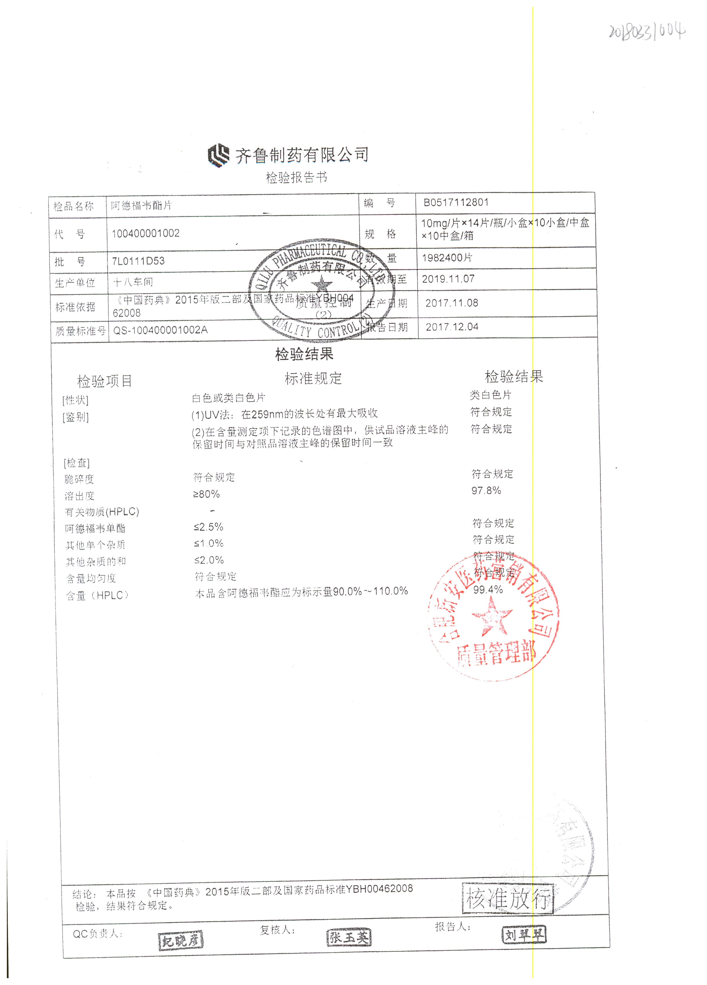 名稱 | 規(guī)格 | 批號 | 藥檢報告 |