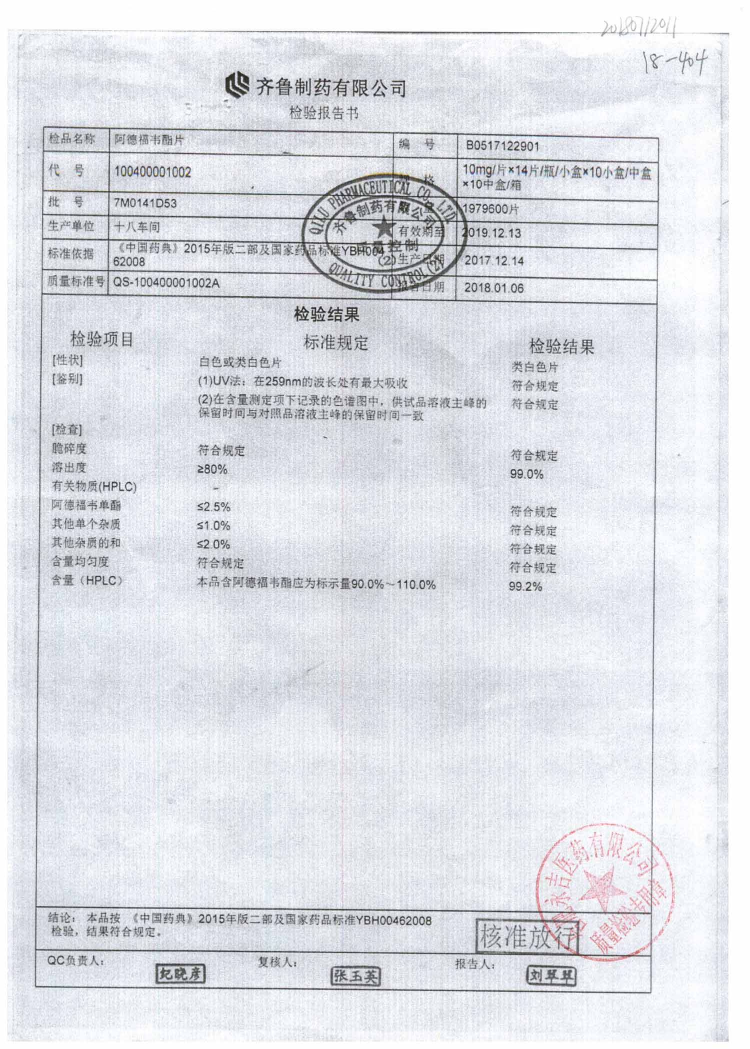 阿德福韋酯片 | 10mg*14s | 7M0141D53 | 查看詳情 |