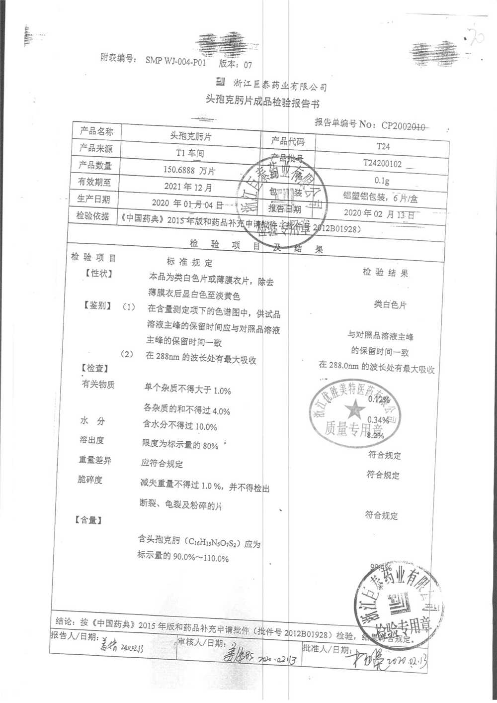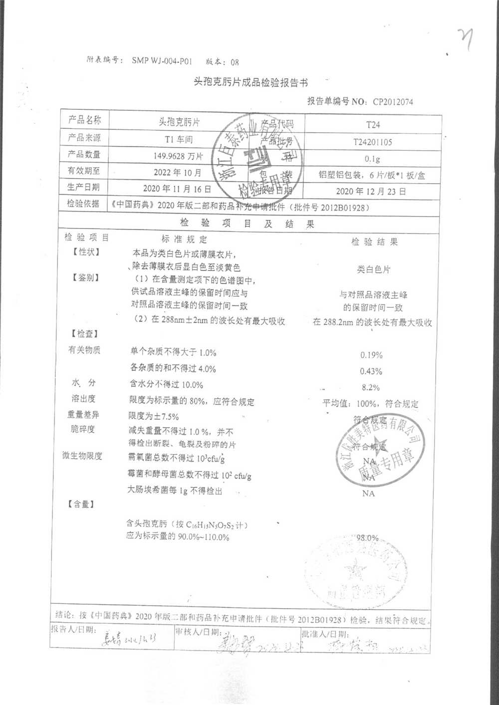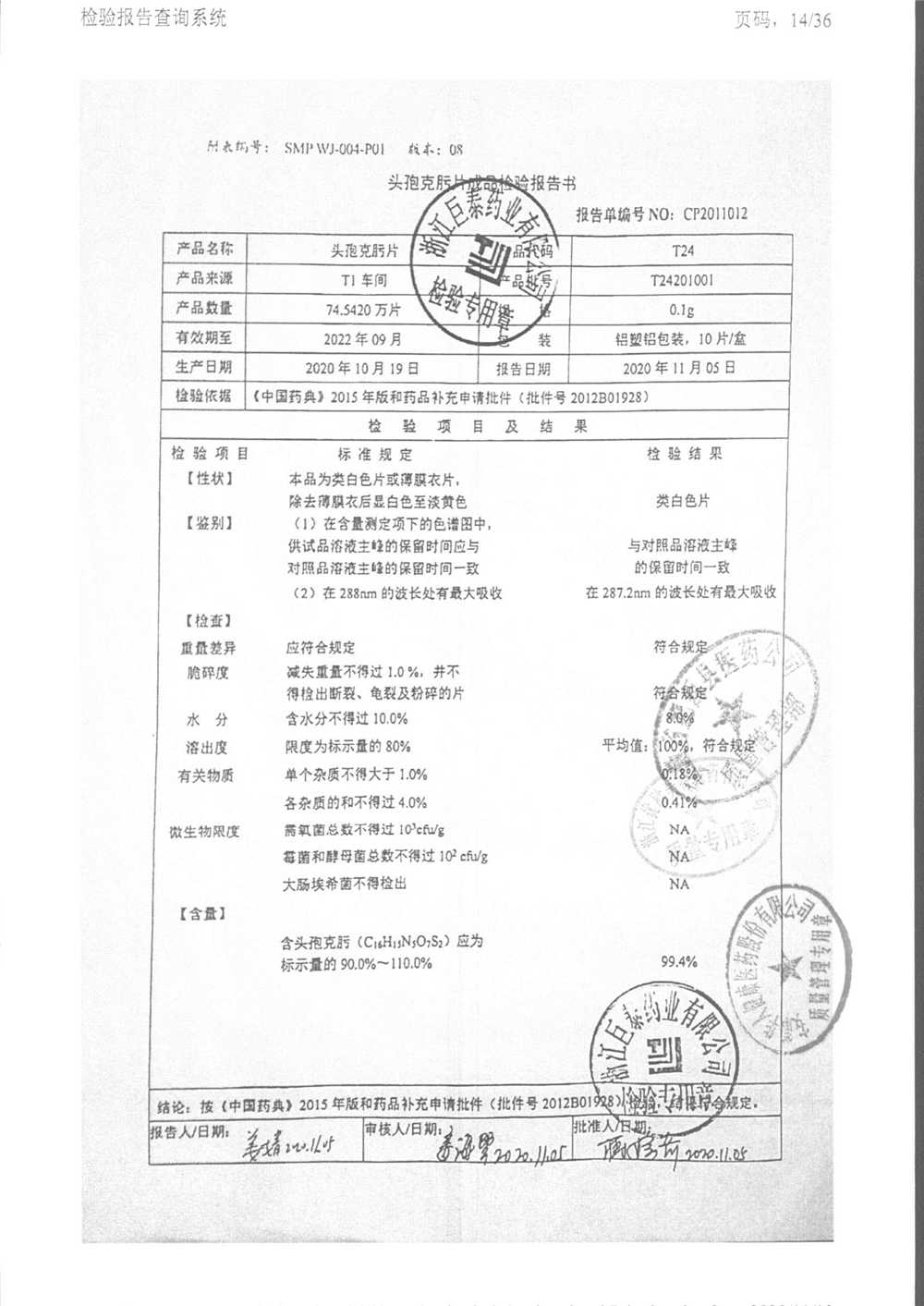 頭孢克肟片 | 0.1g*10s | T24201101 | 查看詳情 |