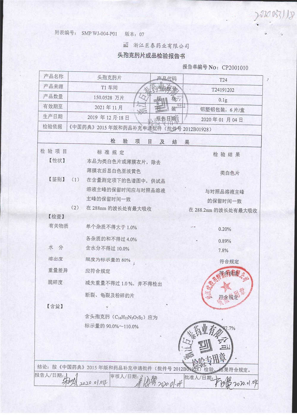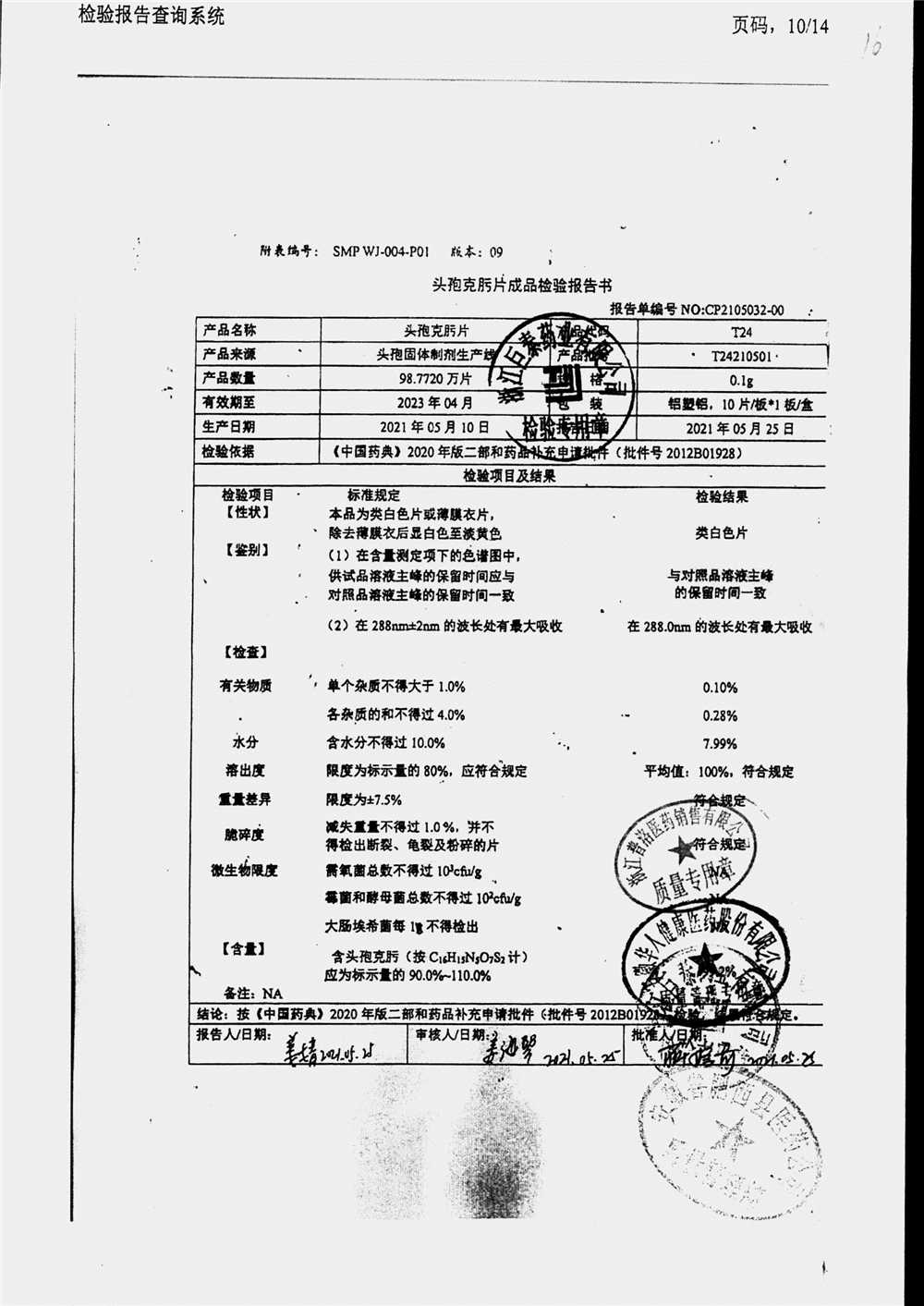 頭孢克肟片 | 0.1g*10s | T24191101 | 查看詳情 |