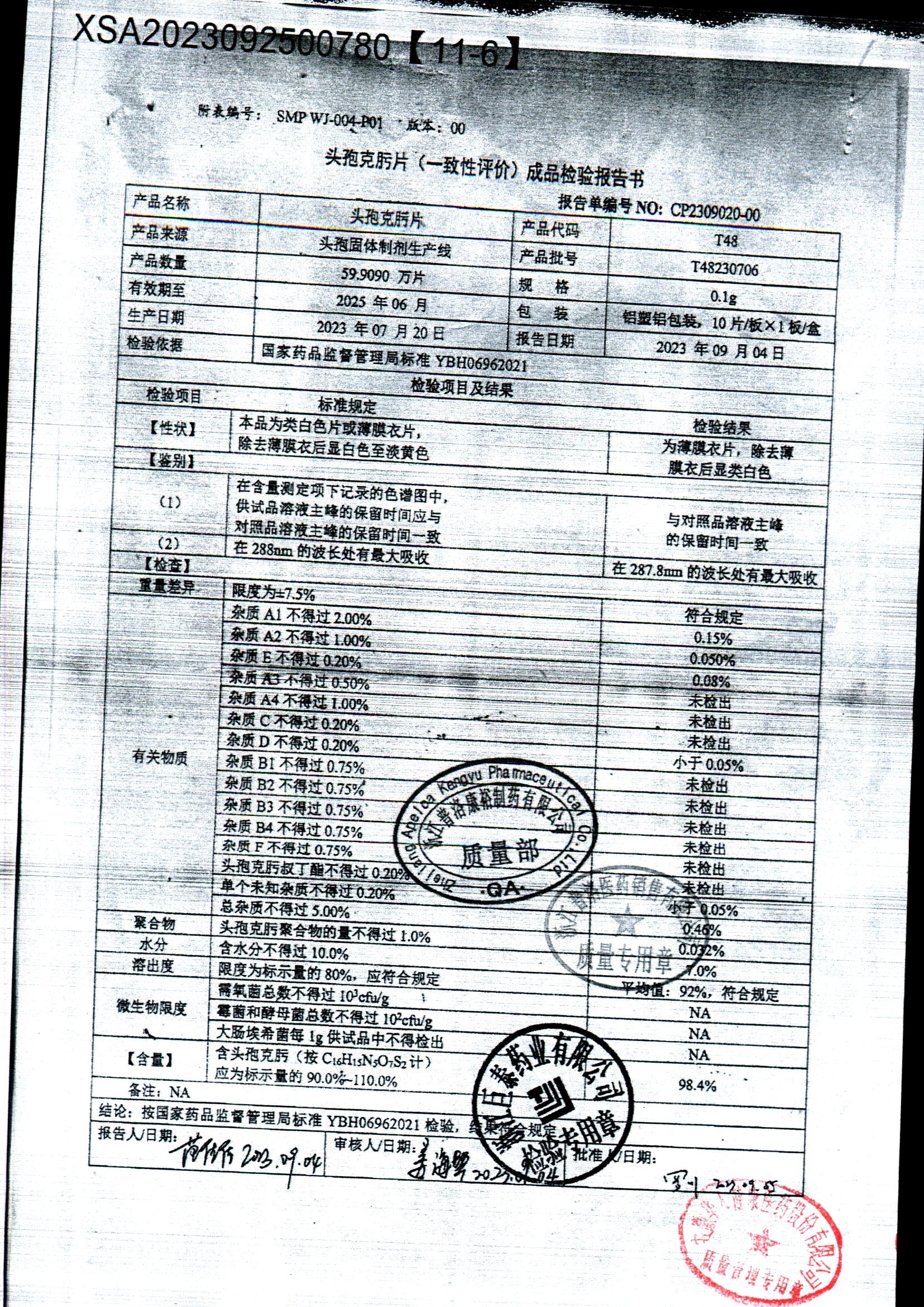 頭孢克肟片 | 0.1g*10s | T24201104 | 查看詳情 |