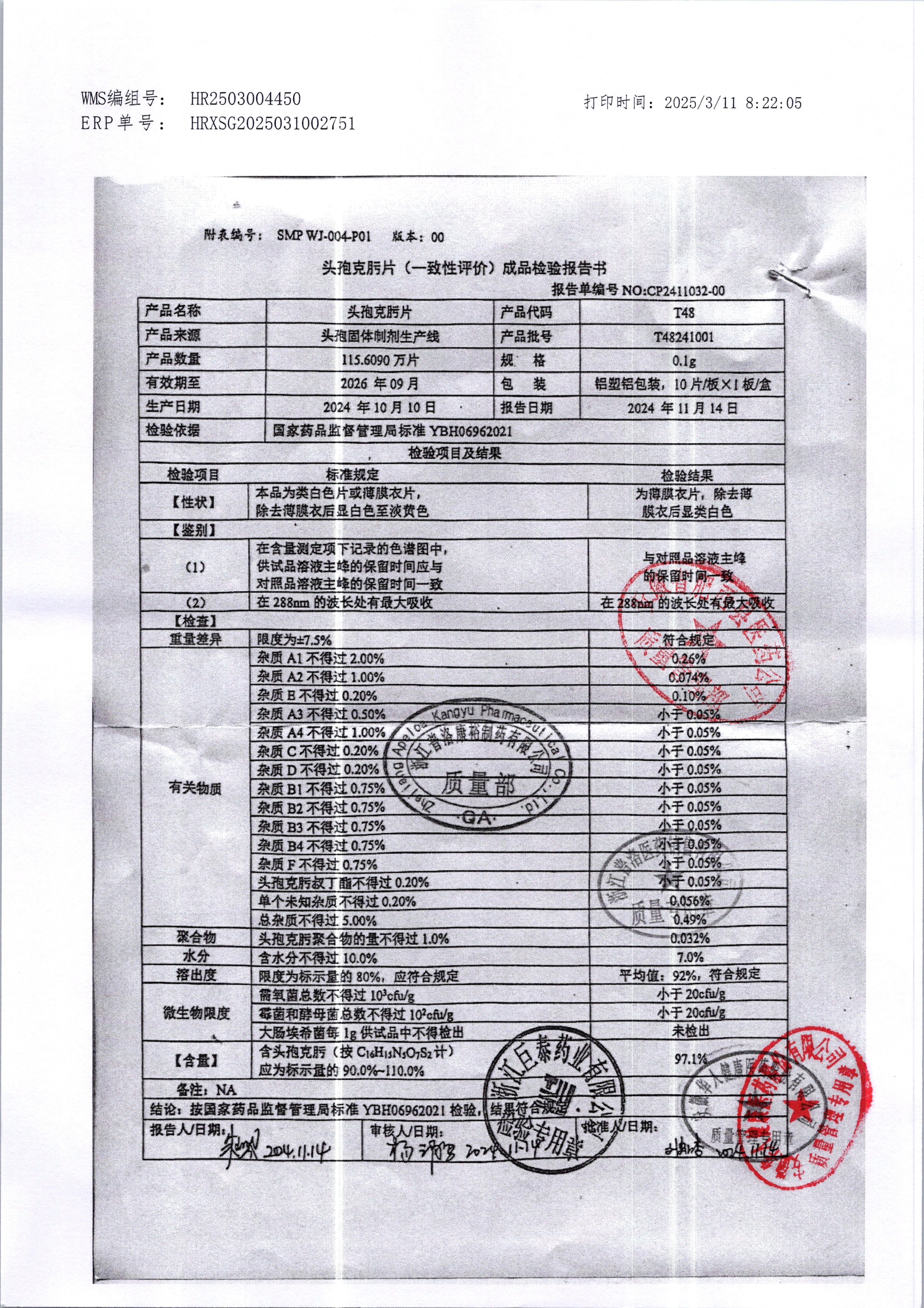 頭孢克肟片 | 0.1g*10s | T24200306 | 查看詳情 |