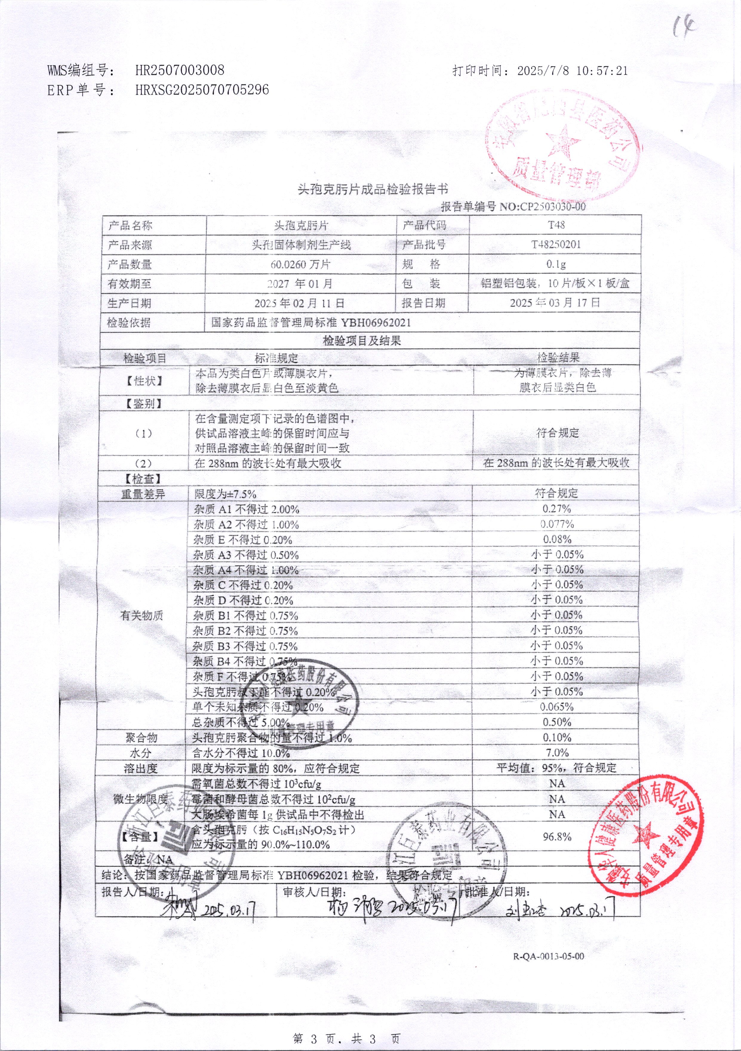 頭孢克肟片 | 0.1g*10s | T24190307 | 查看詳情 |