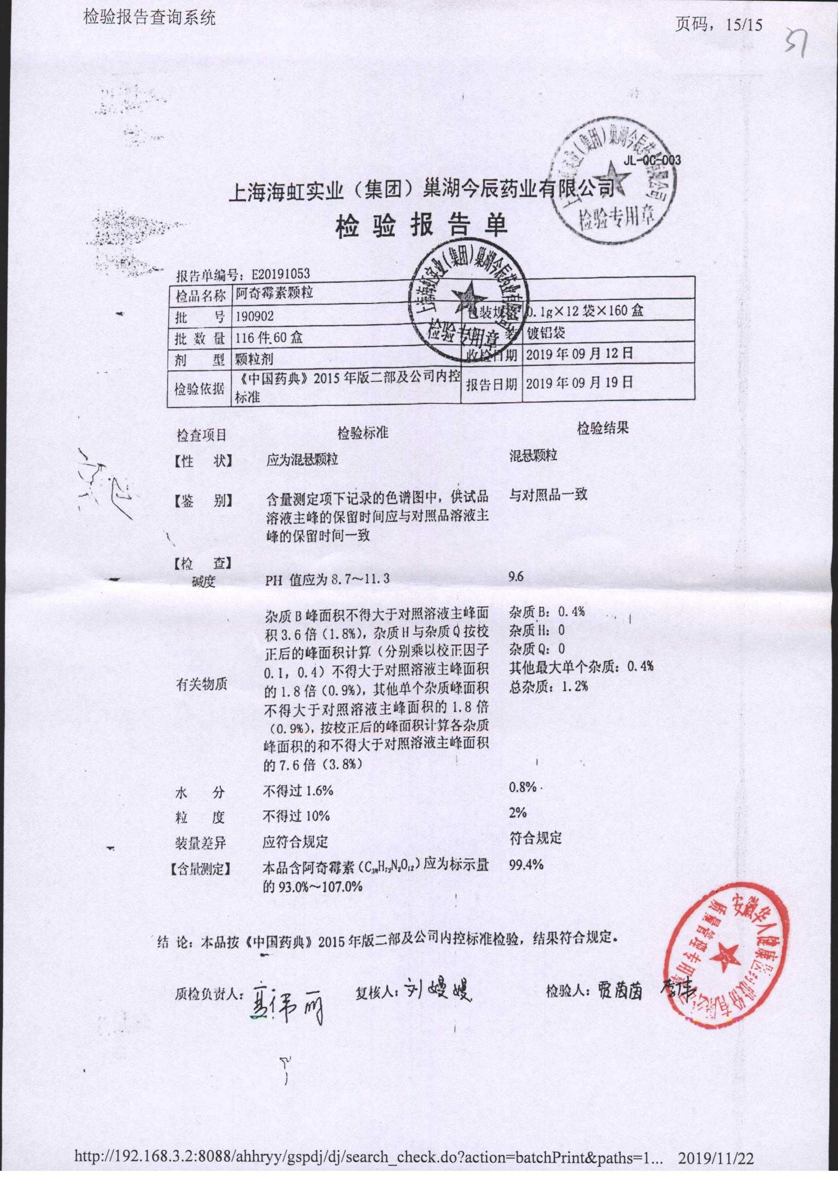 阿奇霉素顆粒 | 0.1g-12袋 | 190522 | 查看詳情 |