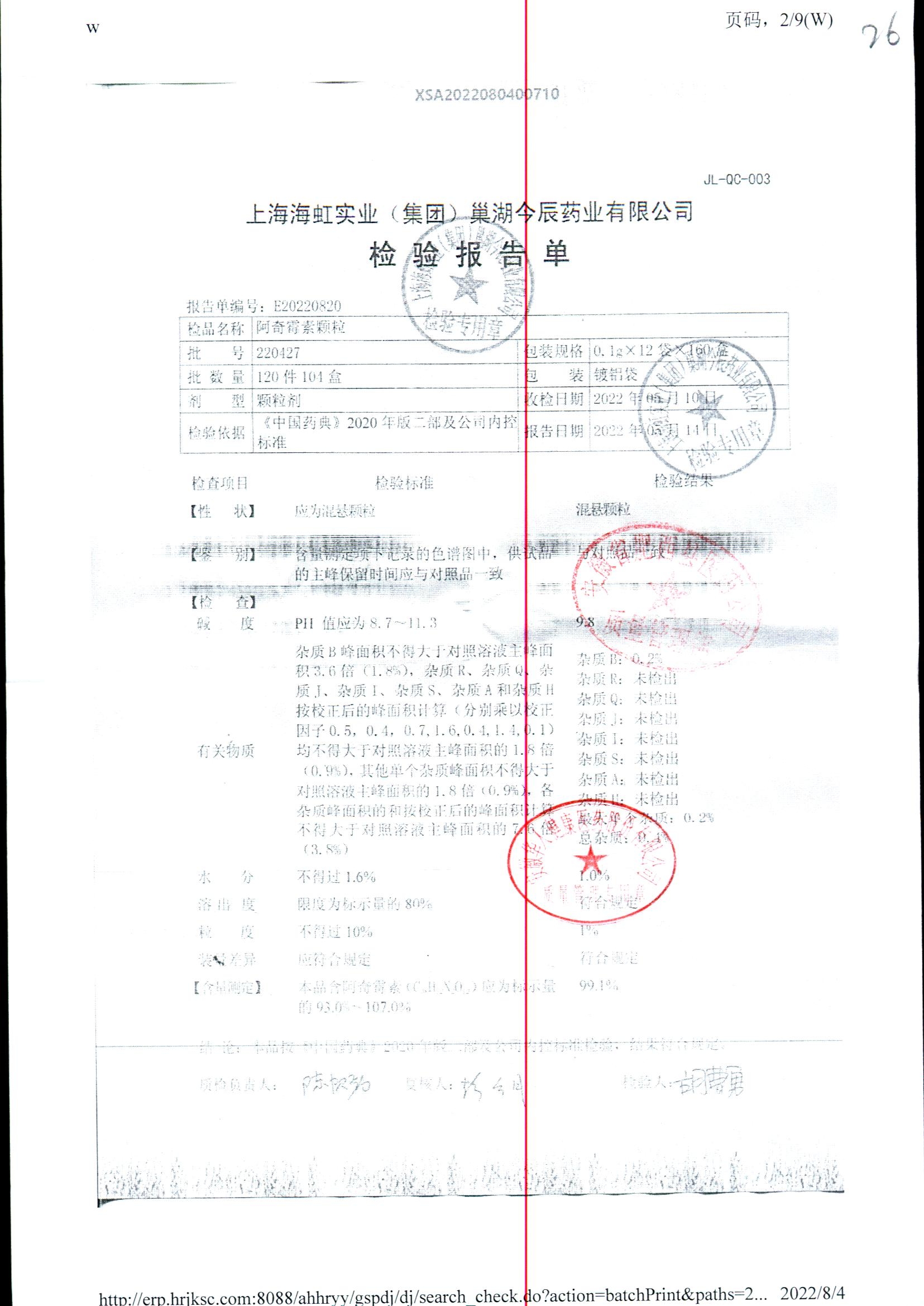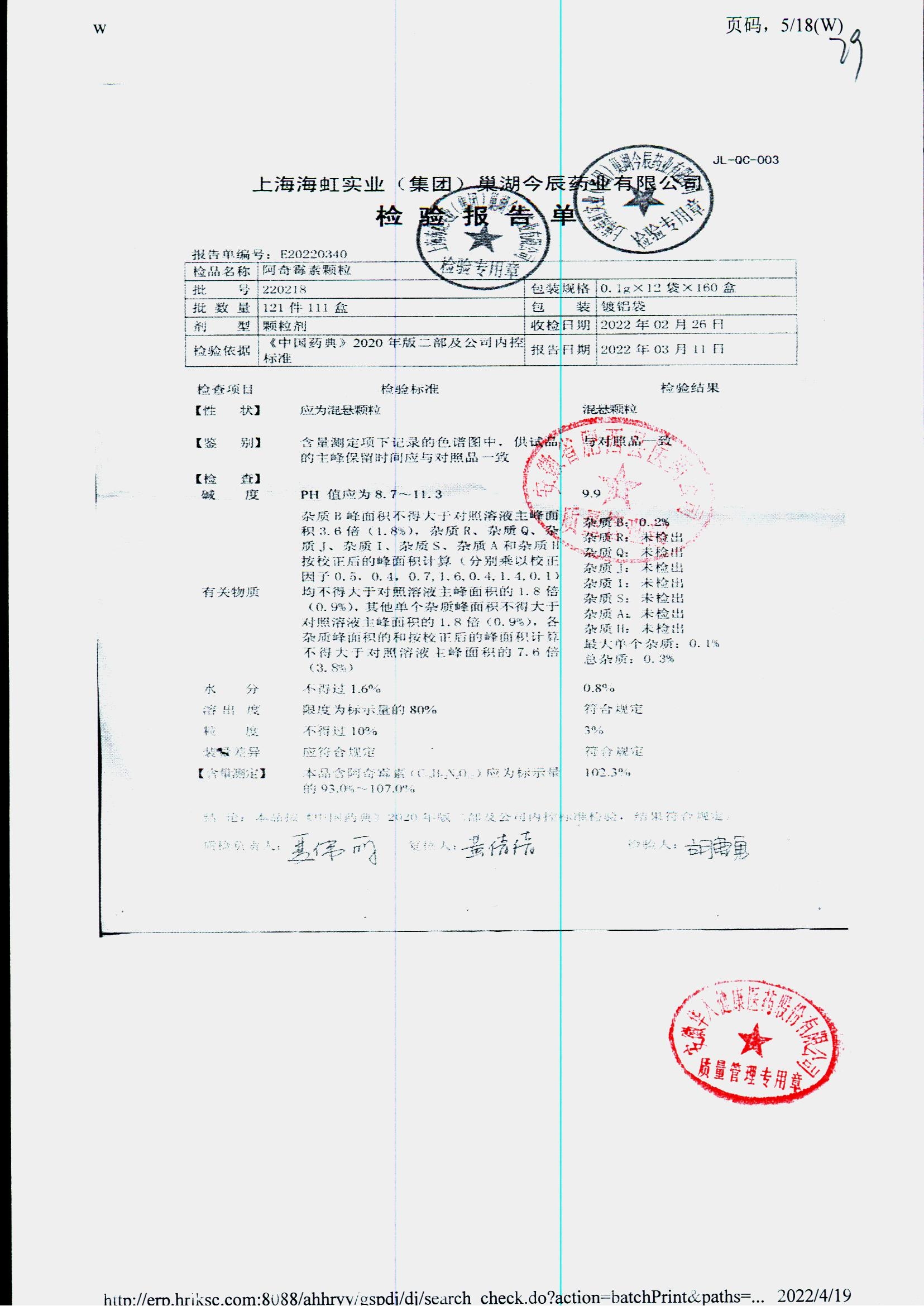 名稱 | 規(guī)格 | 批號 | 藥檢報告 |