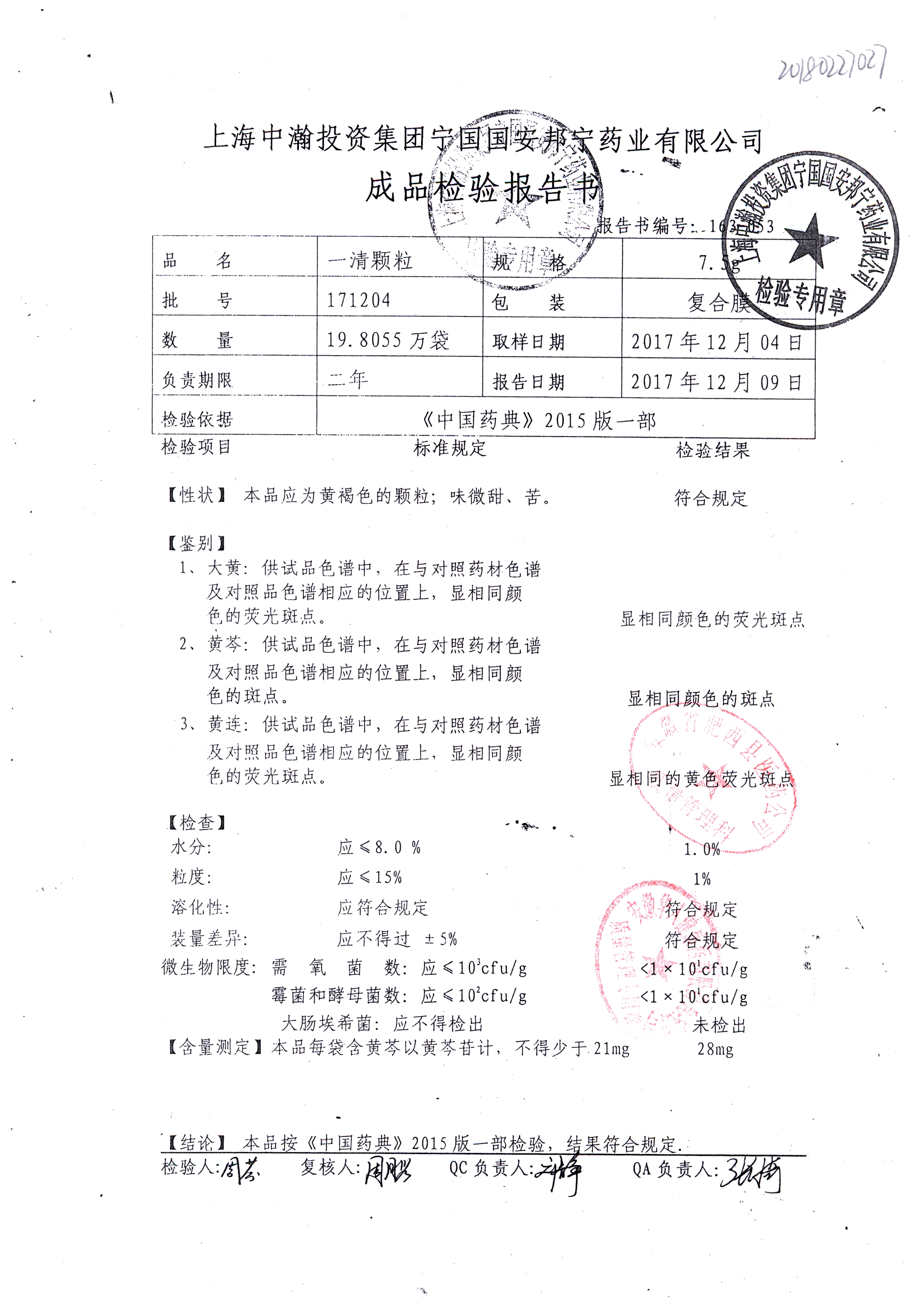 名稱 | 規(guī)格 | 批號(hào) | 藥檢報(bào)告 |