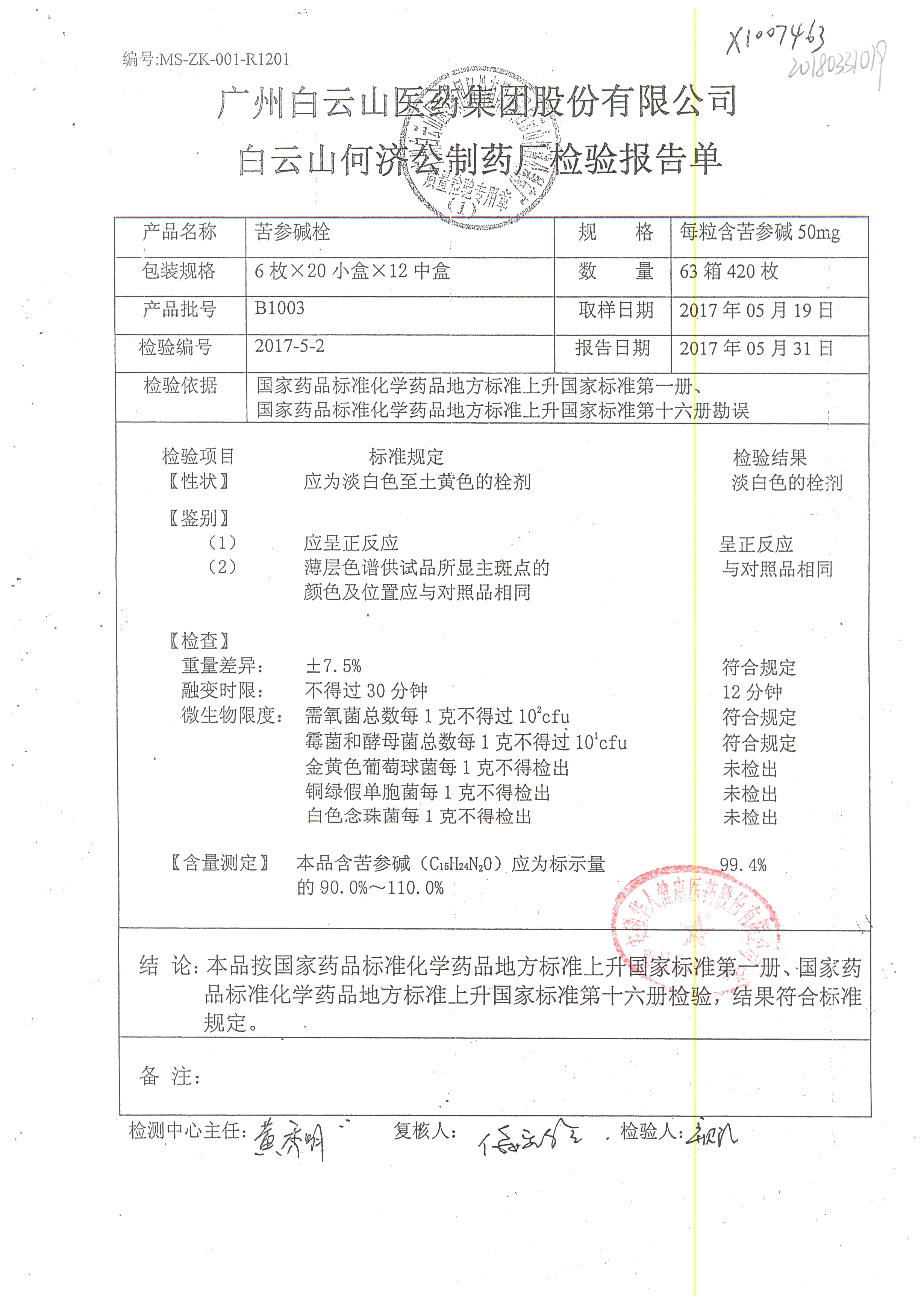 苦參堿栓 | 50mg*6枚 | B1003 | 查看詳情 |