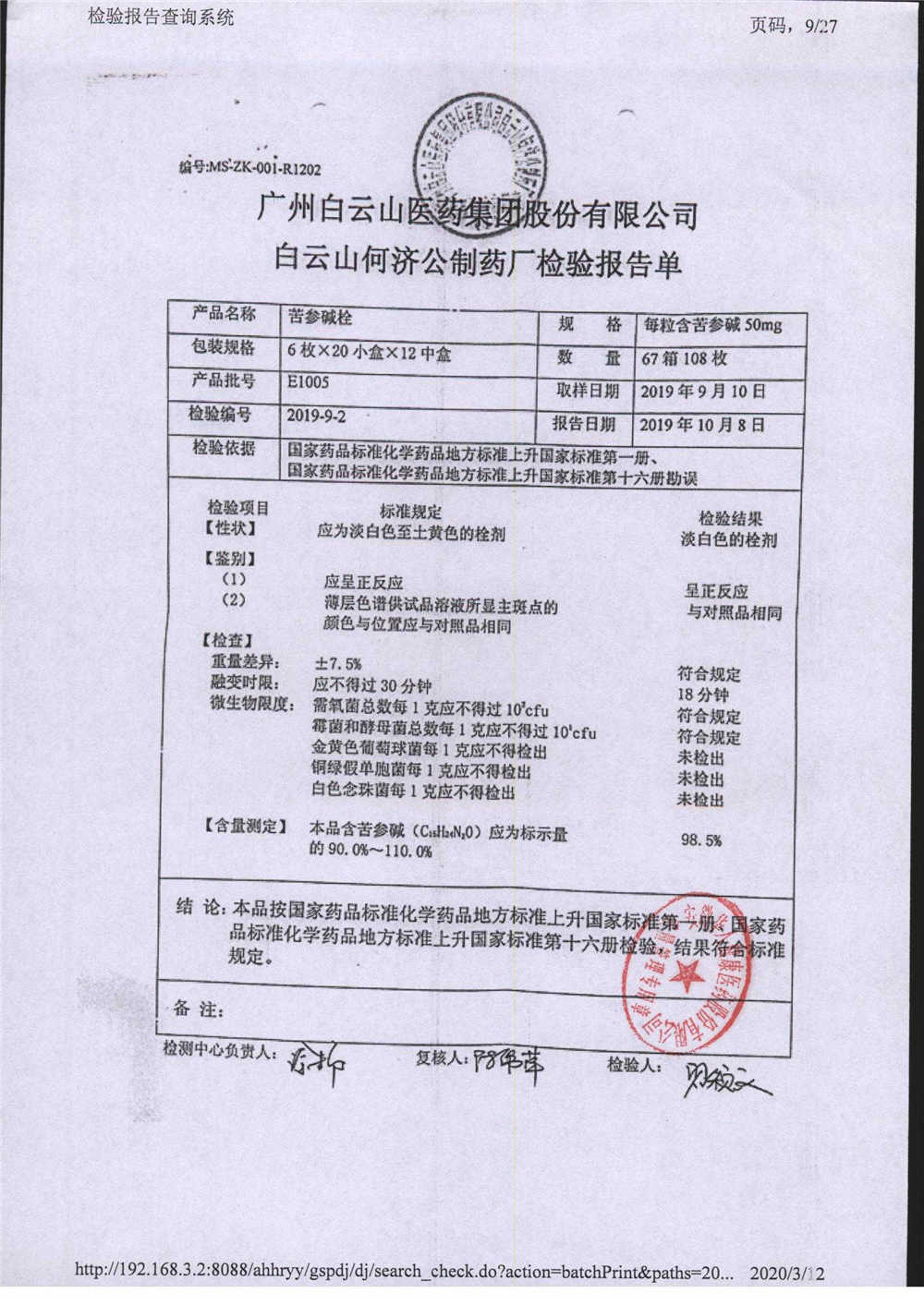 名稱 | 規(guī)格 | 批號(hào) | 藥檢報(bào)告 |