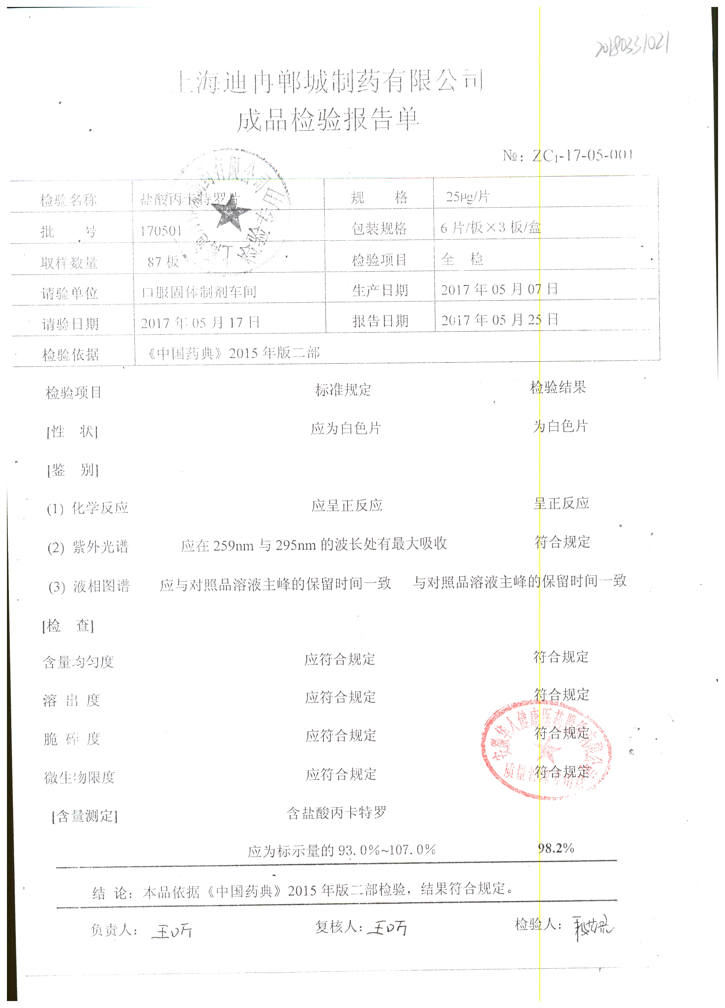鹽酸丙卡特羅片 | 25mg*6s | 170501 | 查看詳情 |
