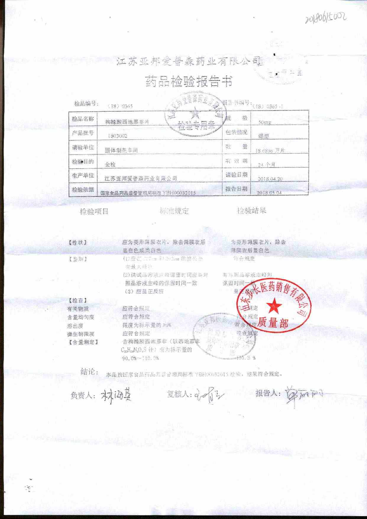 名稱 | 規(guī)格 | 批號 | 藥檢報告 |