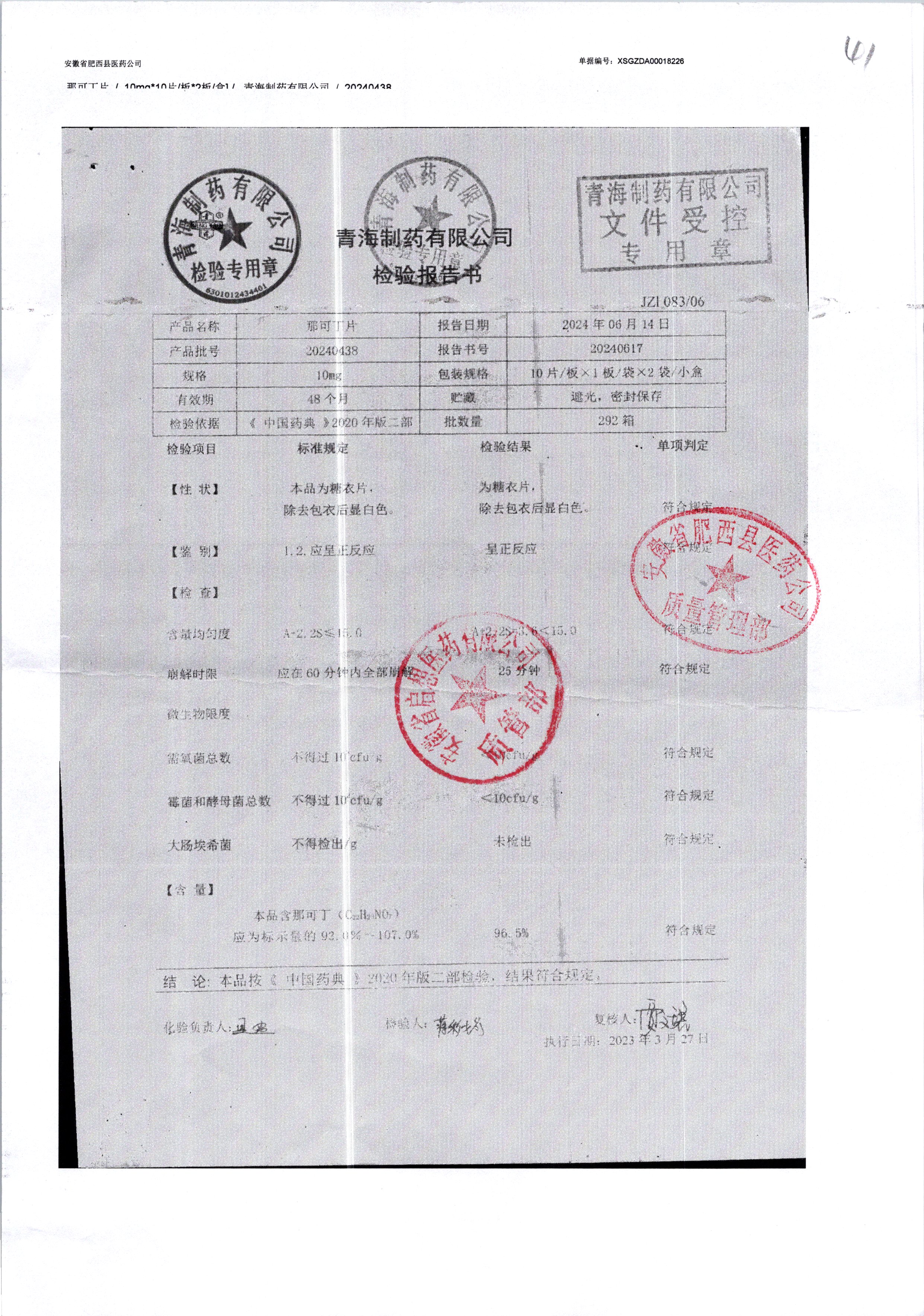 那可丁片 | 0.01g | 20240416 | 查看詳情 |
