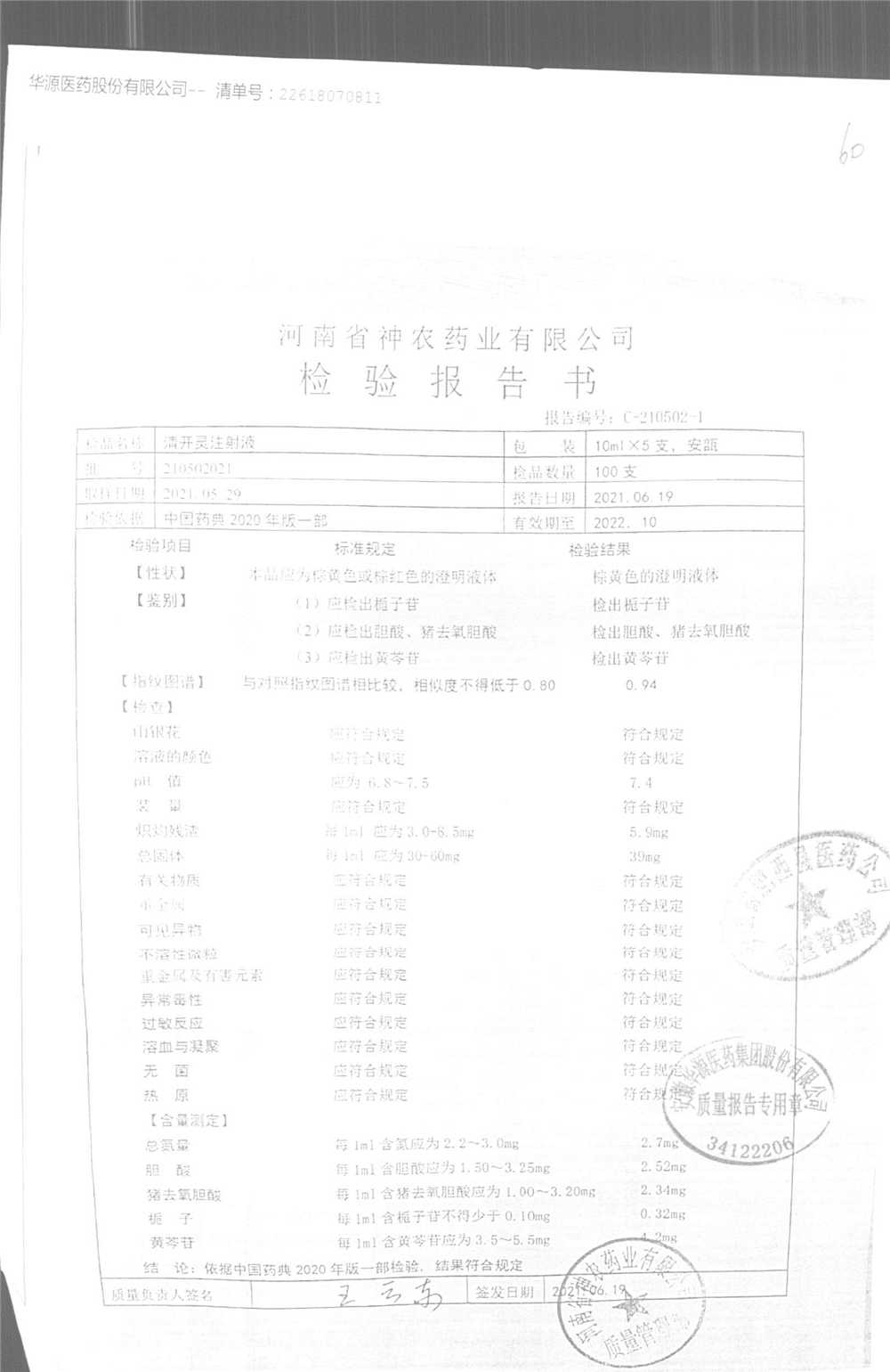 清開靈注射液 | 10ml*5支 | 210102021 | 查看詳情 |