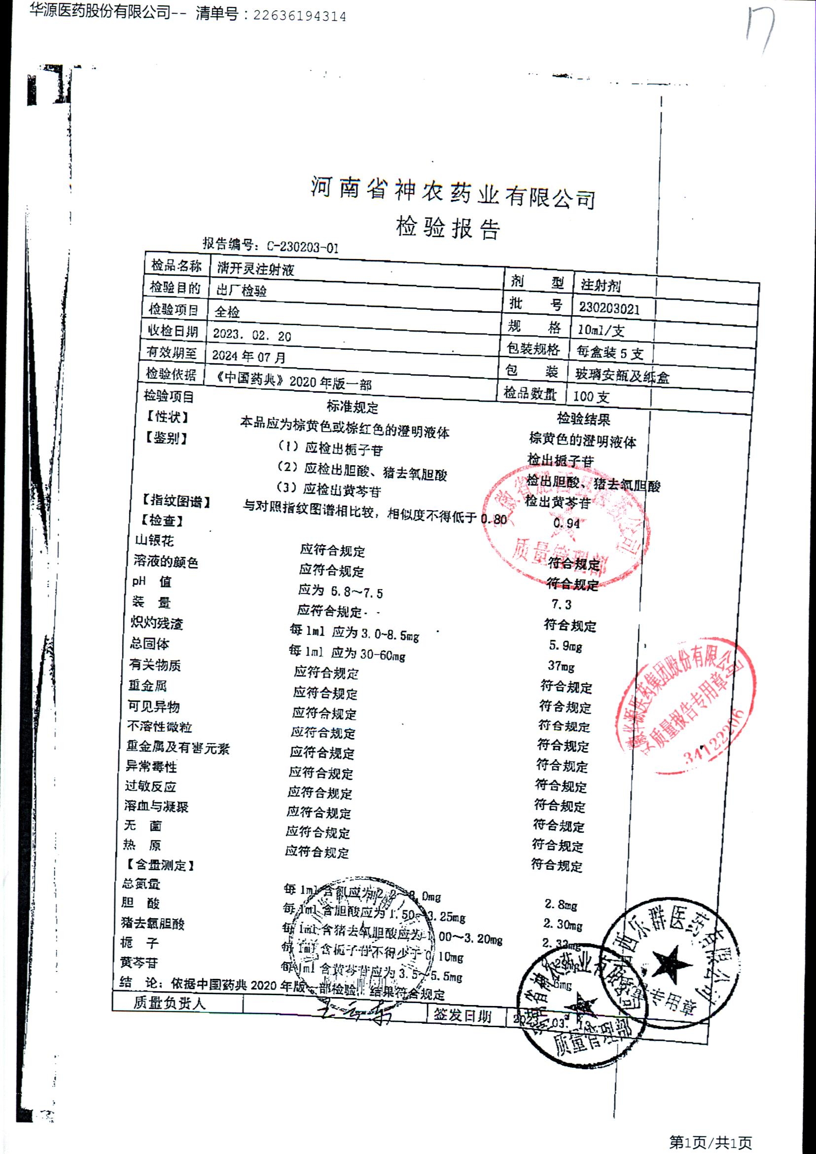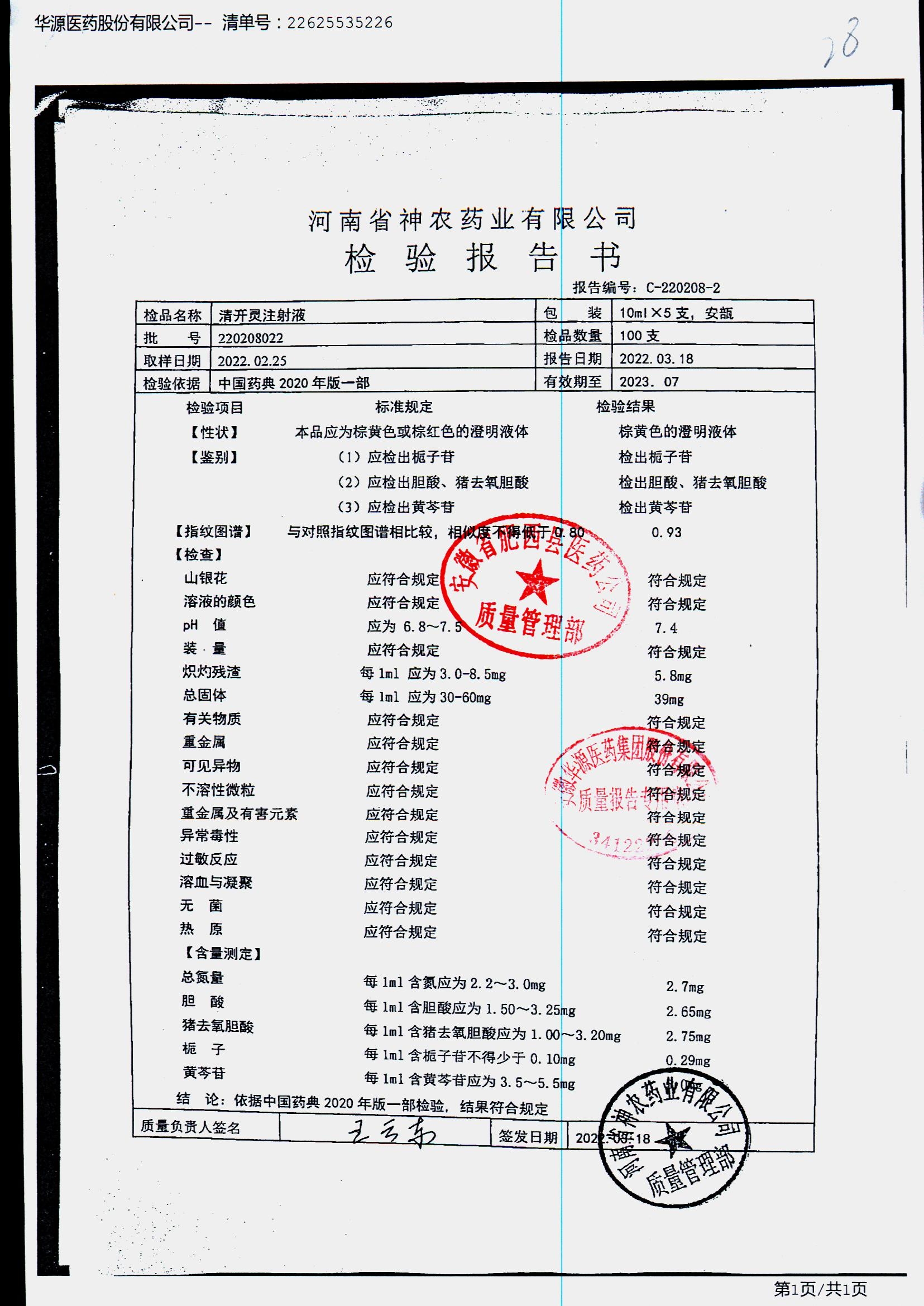 清開靈注射液 | 10ml*5支 | 220107022 | 查看詳情 |