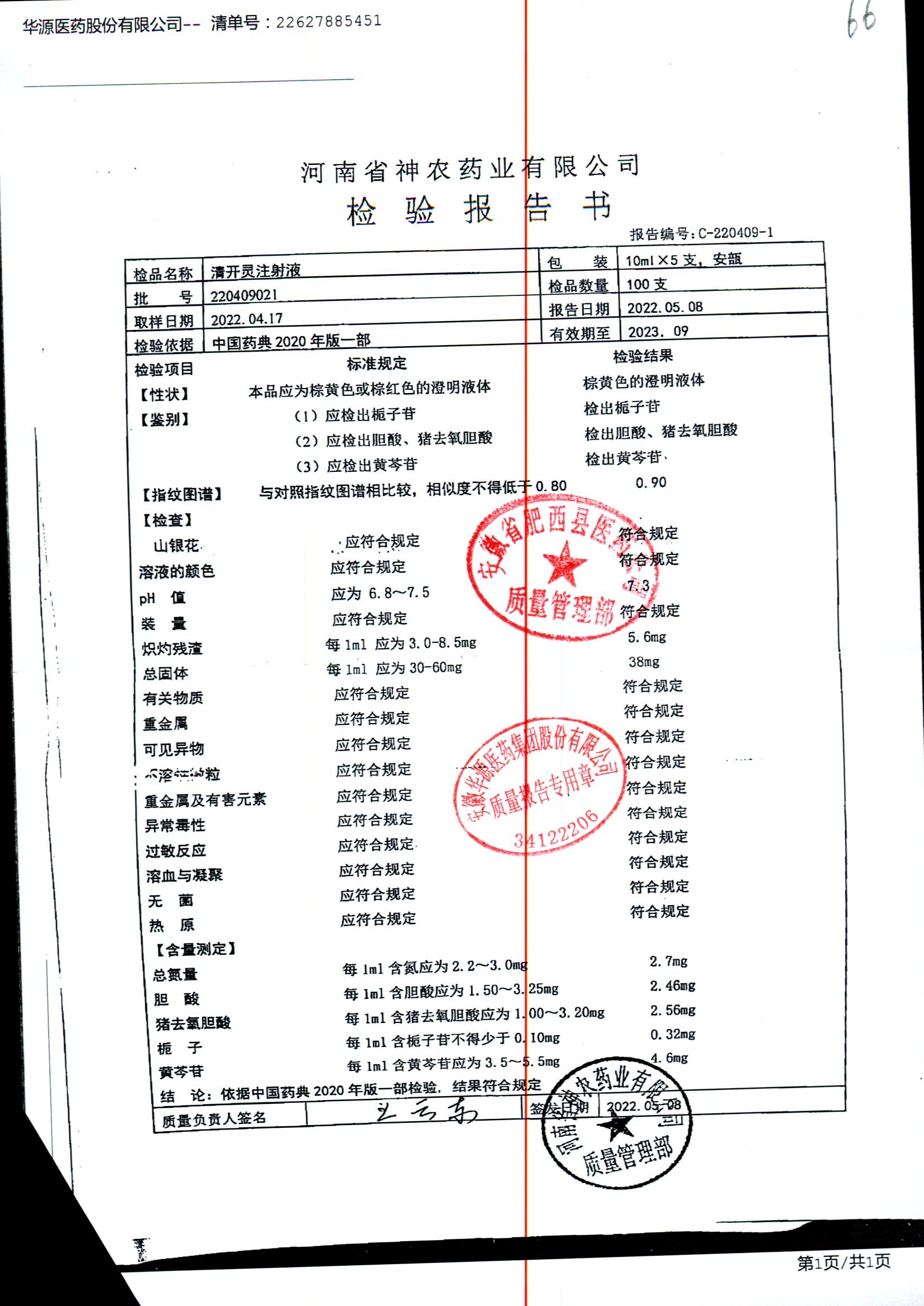 清開靈注射液 | 10ml*5支 | 220409021 | 查看詳情 |