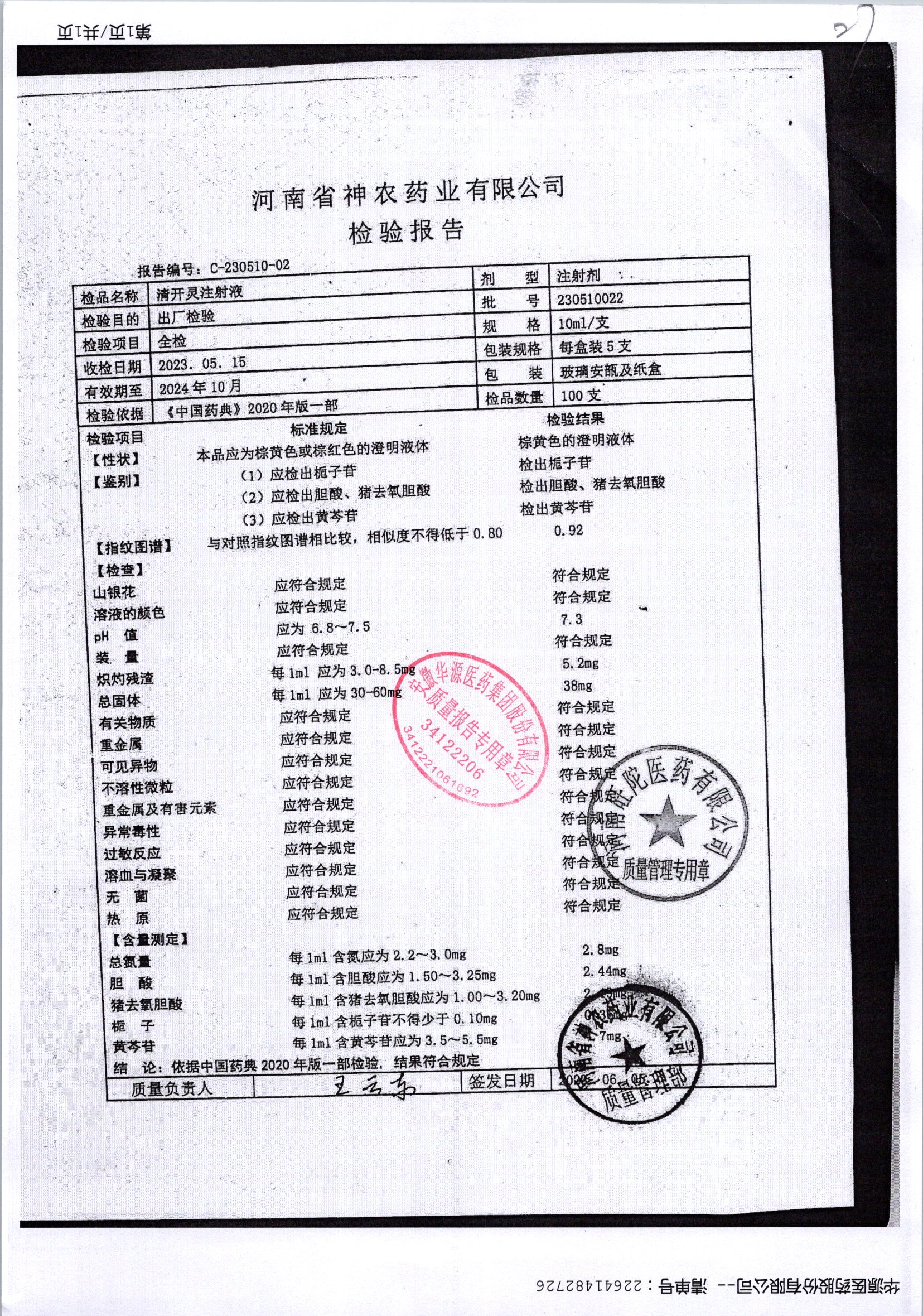 清開靈注射液 | 10ml*5支 | 230510022 | 查看詳情 |