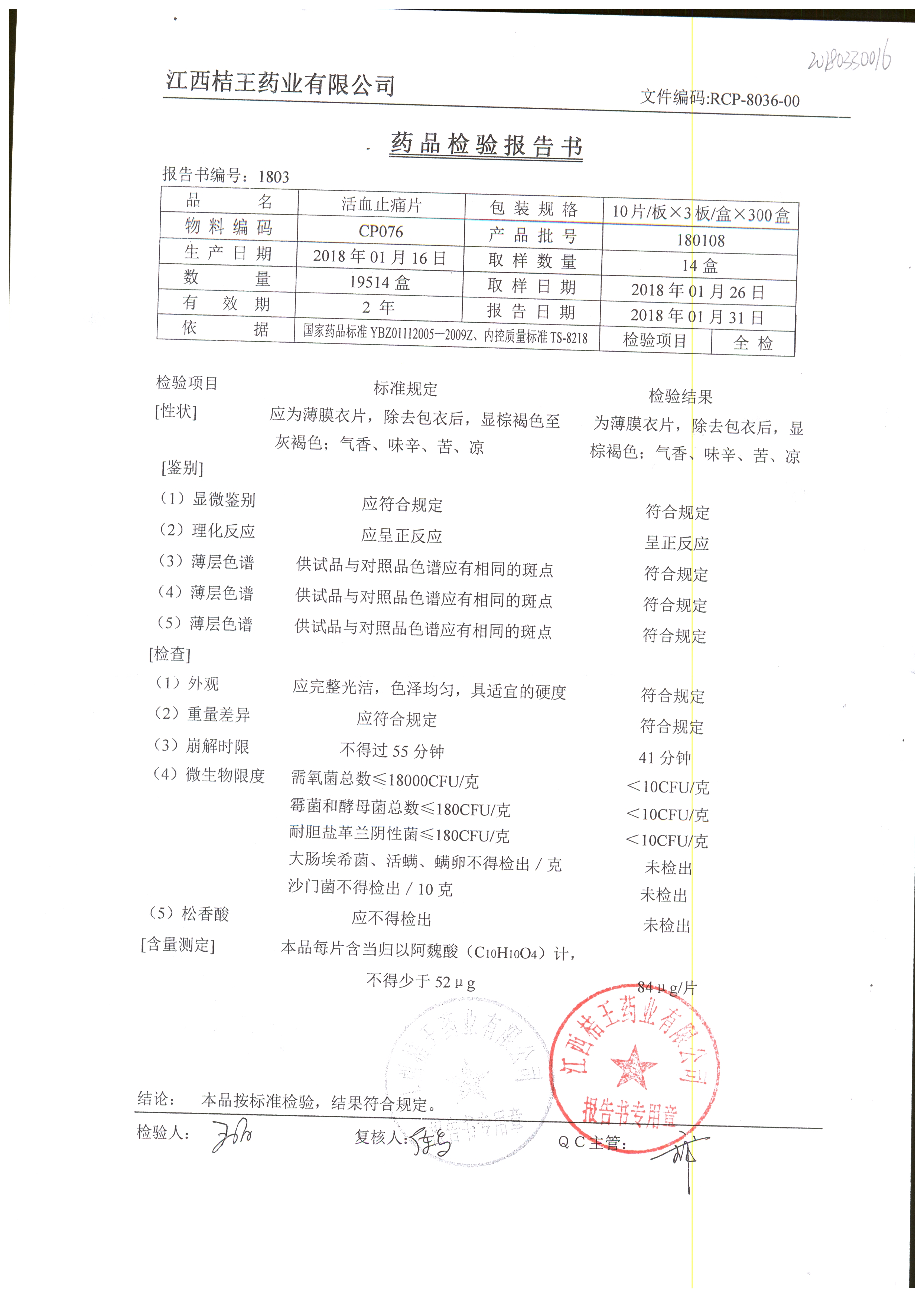 活血止痛片 | 10s*3板 | 180616 | 查看詳情 |