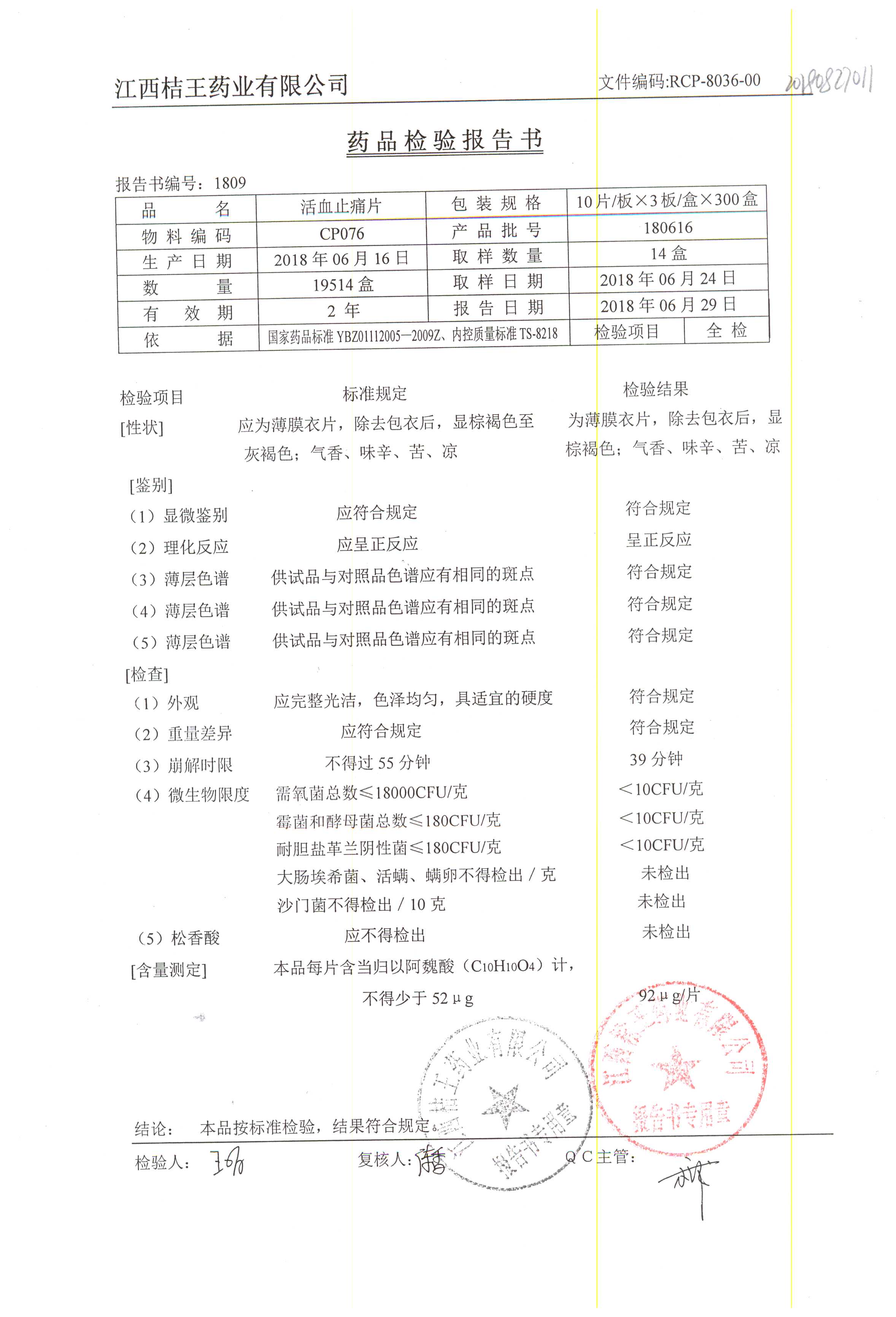 名稱 | 規(guī)格 | 批號 | 藥檢報告 |